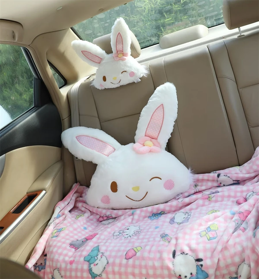 Comprar Sanrio Kawaii Wish Me Mell cojín trasero de conejo, almohada cómoda, manta de reposacabezas, peluches de Anime rellenos, regalos de Navidad para niñas