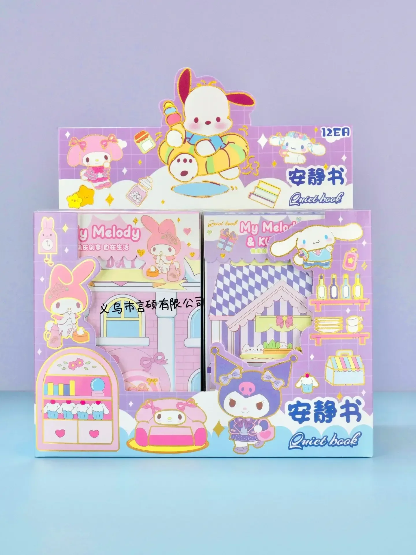 Comprar Sanrio Kulomi-juguetes periféricos de Anime, 12 piezas, perro de orejas grandes, libro silencioso cortado, libro de juguete sin cremallera, pellizco, música, creatividad, Material de vestir Diy