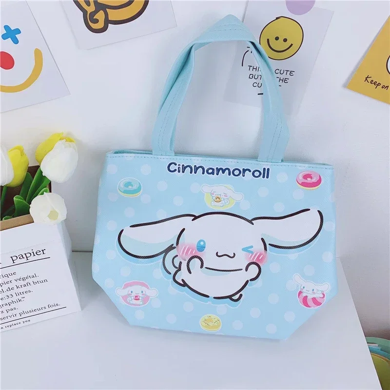 Sanrio Kuromi Cinnamoroll bolso de mano de PU fiambrera de gran capacidad bolsa de almacenamiento de vasos de agua hermoso regalo de pareja lindo corazón femenino