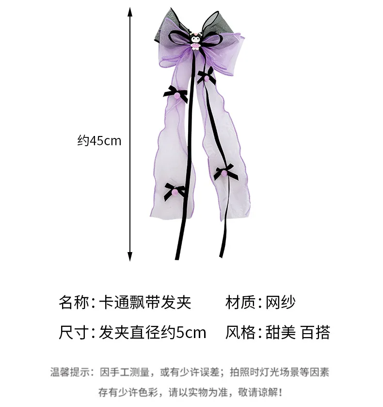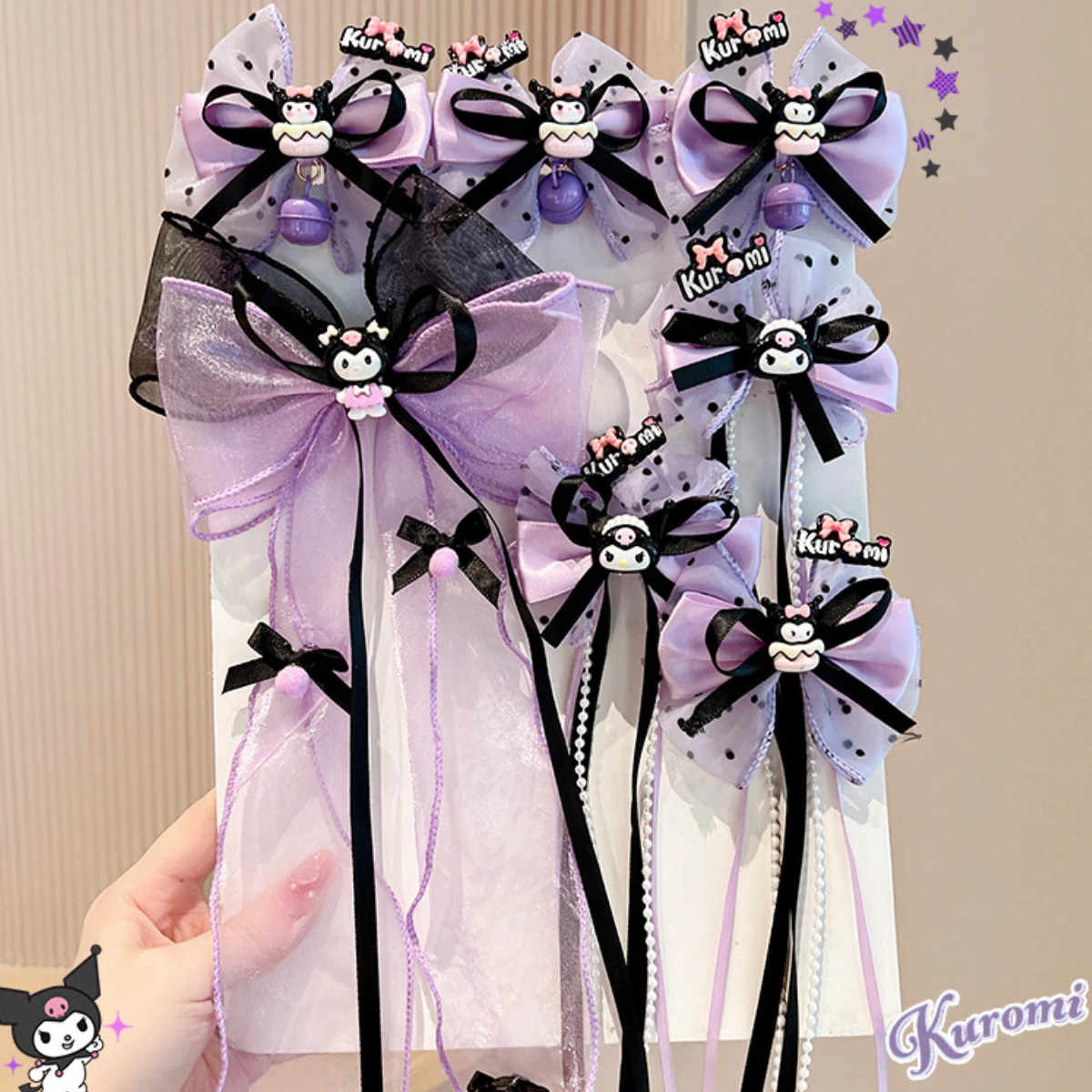 Comprar Sanrio Kuromi nuevo conjunto con rizador para el cabello, accesorios acrílicos para el cabello de dibujos animados, lazo Kawaii, cinta de seda, flequillo, horquilla, regalo para chica a la moda