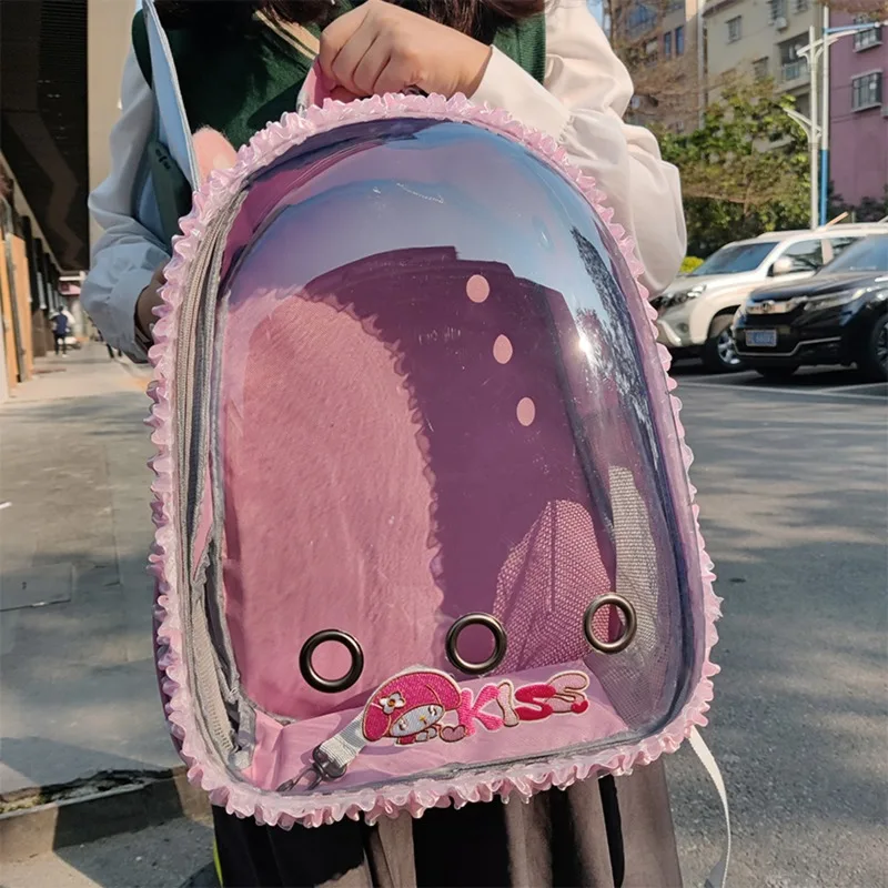 Comprar Sanrio Melody Cinnamoroll mochila de doble hombro para mascotas, bolsa transparente rosa para gatos, mochila para mascotas al aire libre