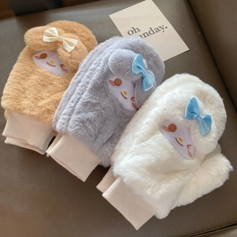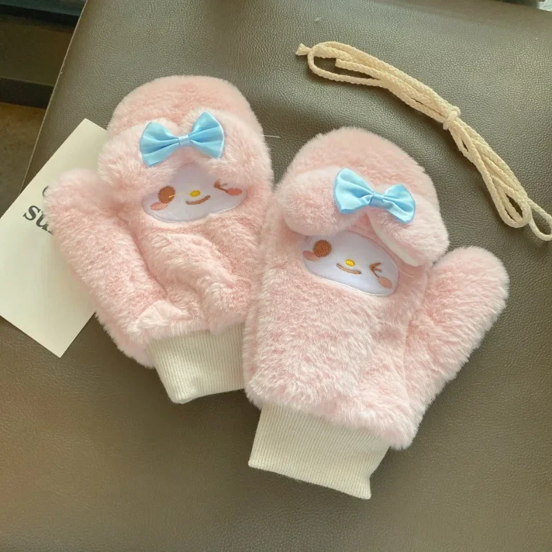 Comprar Sanrio Melody-guantes con cordón portátiles para mujer, guantes de dedo completo, gruesos y esponjosos, lindos dibujos animados, regalos, chica joven, cálido, invierno