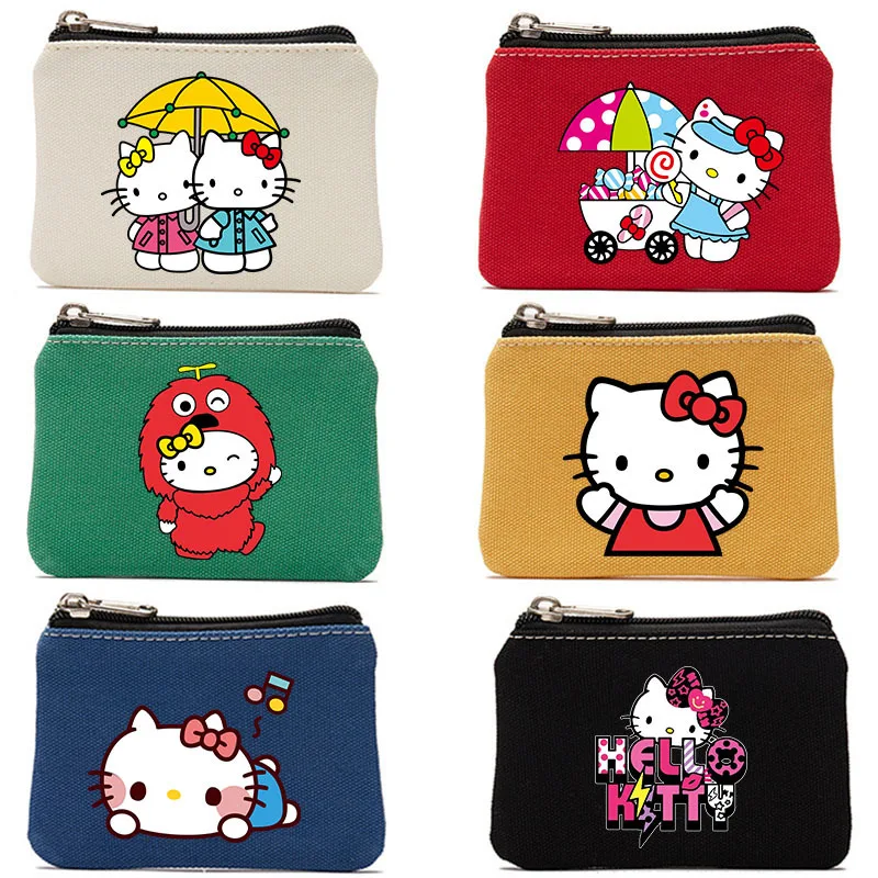 Comprar Sanrio-monederos de Hello Kitty para niñas, Mini monedero, bolso de lona, tarjetero, cartera Kawaii, llavero
