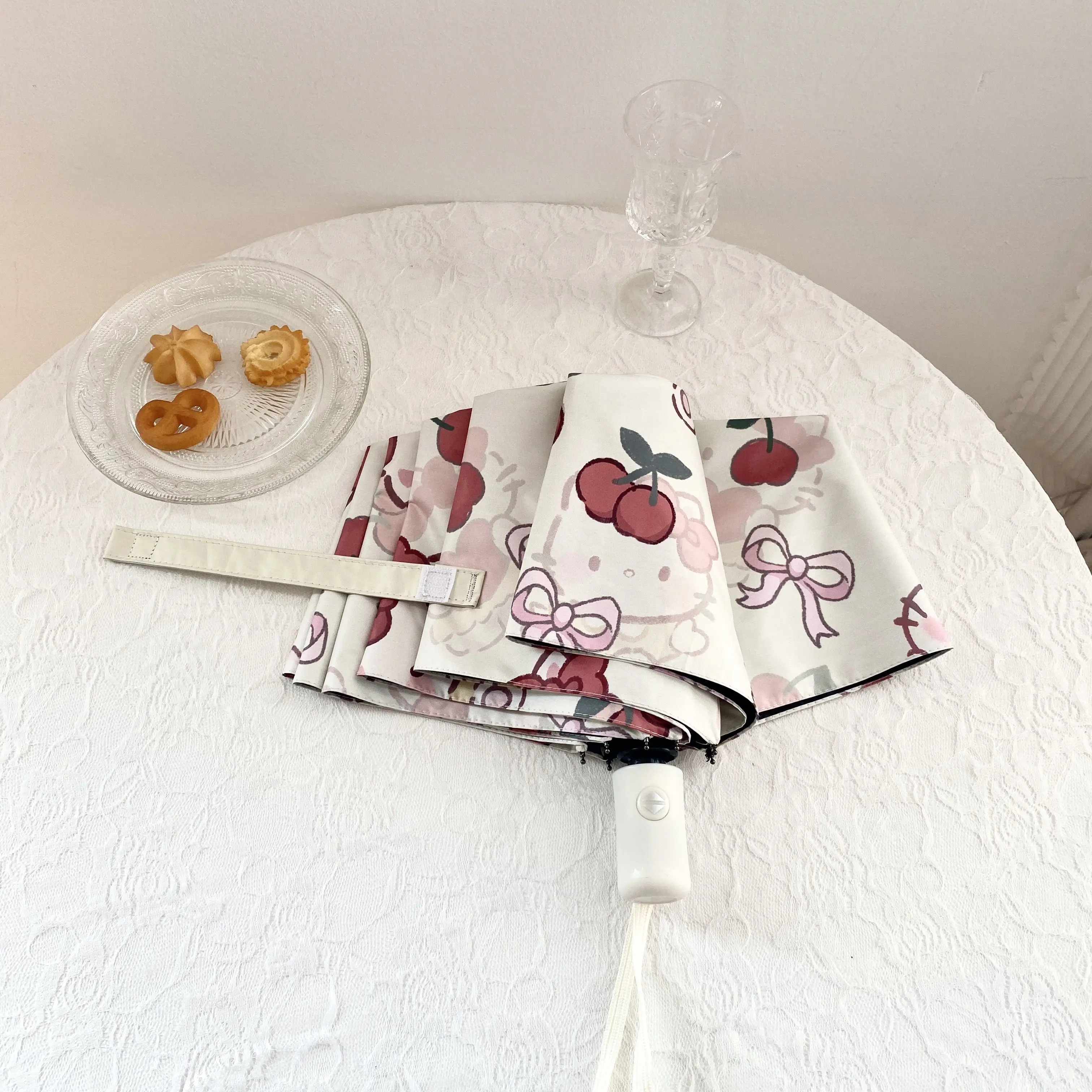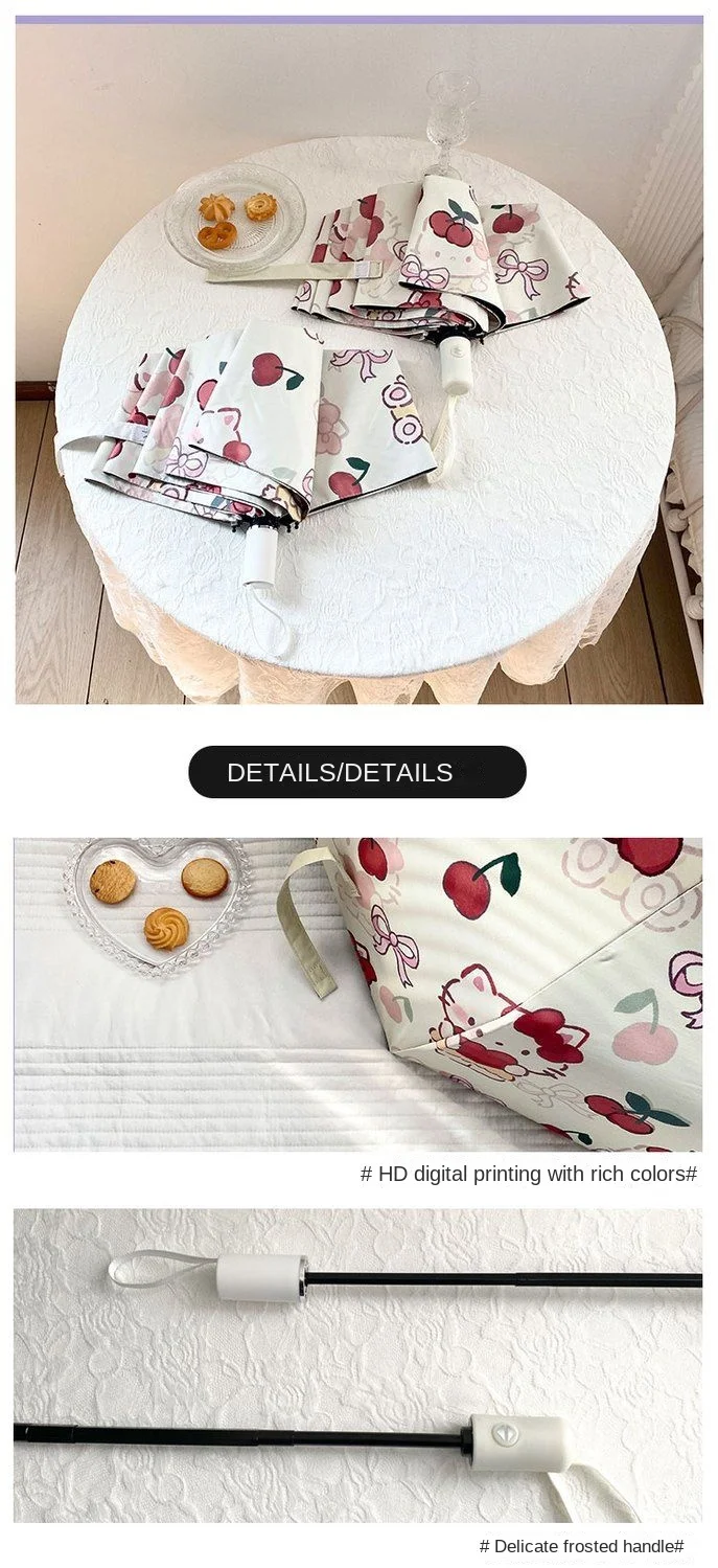 Comprar Sanrio-paraguas de Hello Kitty para niños, paraguas compacto a prueba de viento, protección Uv, plegado automático, sol, lluvia, viajes, niñas, lindos regalos