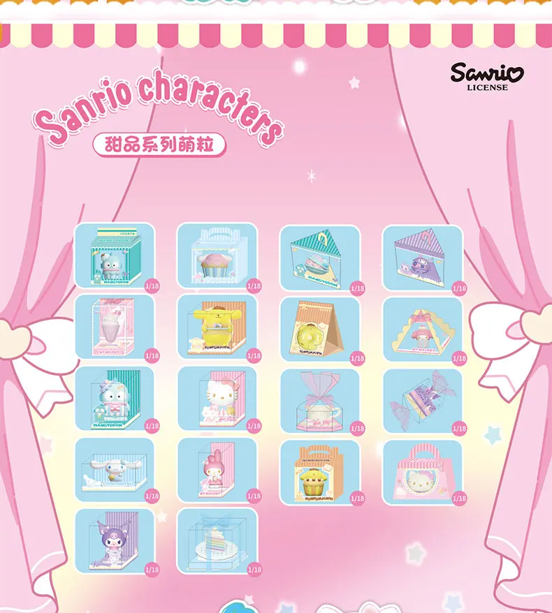 Sanrio personajes caja ciega juguetes serie de postres Mini grano de arroz Kuromi My Melody Hello Kitty muñeca modelo juguetes regalos para niños