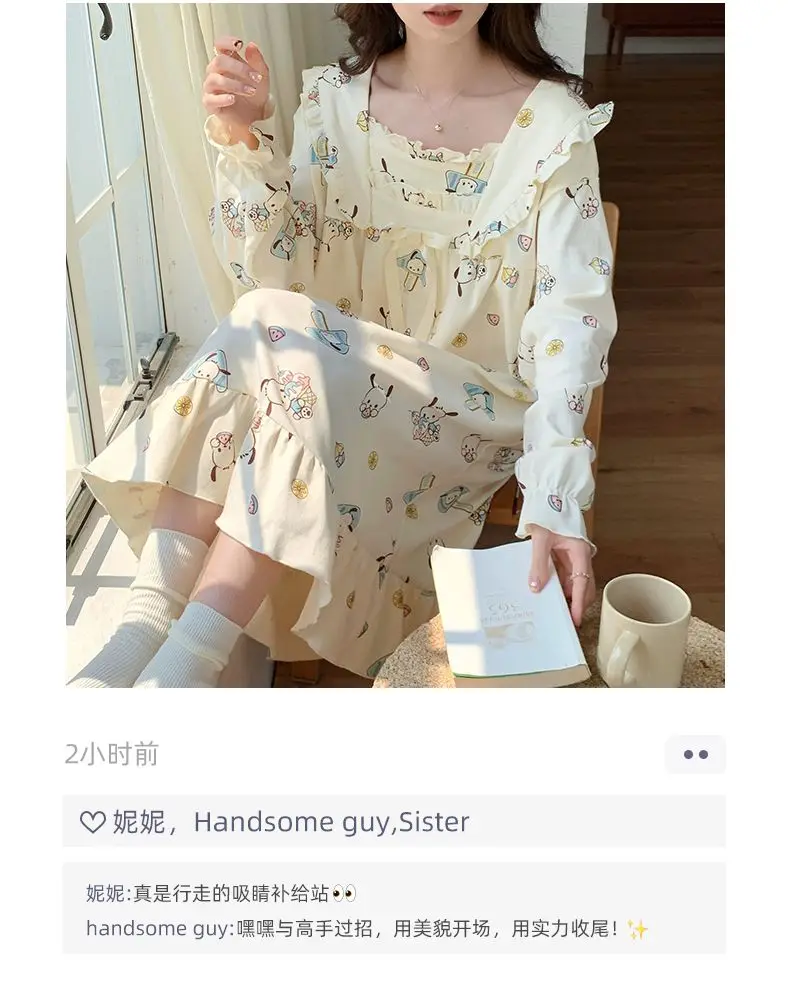 Comprar Sanrio-Pijama Kawaii de Pochacco para mujer, traje de manga larga de aspecto alto, ropa de casa de dibujos animados para estudiantes, regalo, primavera y otoño, nuevo