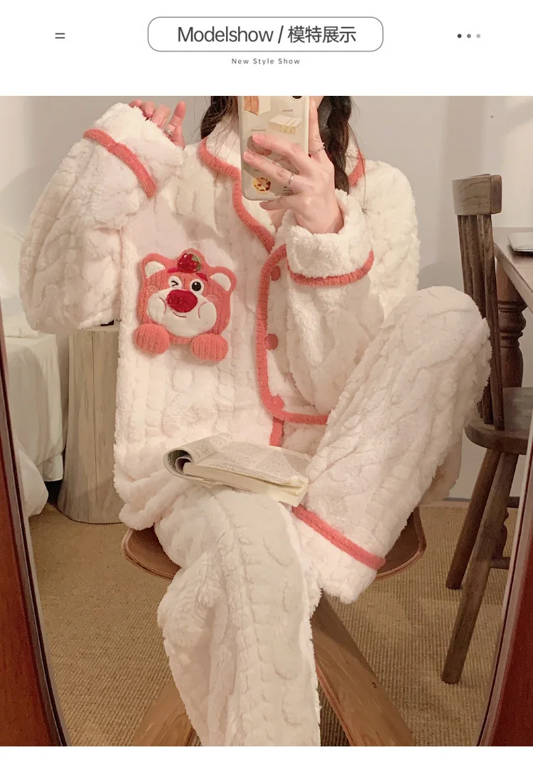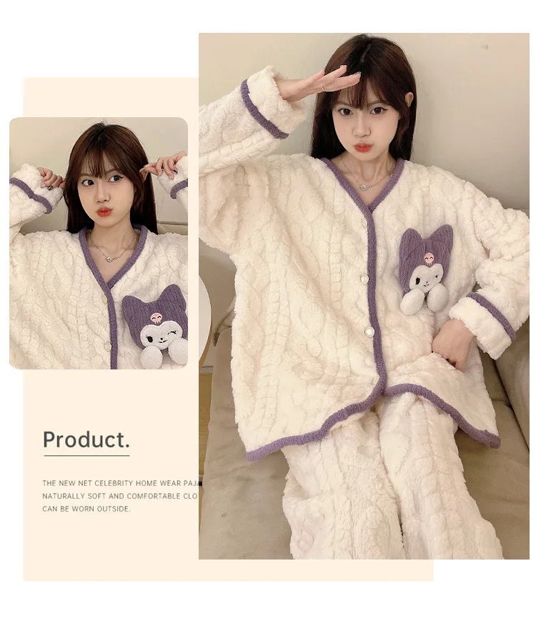 Comprar Sanrio-Pijama de vellón de Coral Kawaii para niñas, ropa cálida de franela gruesa de terciopelo, dibujos animados, Otoño e Invierno