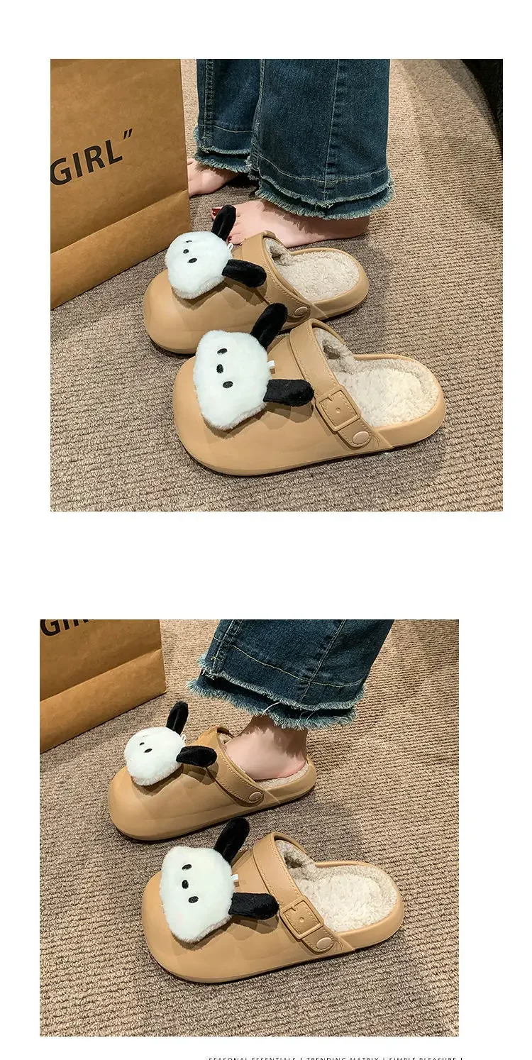 Comprar Sanrio Pochacco Anime Baotou zapatillas dibujos animados lindo corazón femenino invierno suela gruesa antideslizante versátil Slip-on zapatillas de algodón
