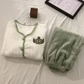 Pijamas de franela de Anime Sanrios Pochacco Kawaii Hello Kitty mujer Otoño Invierno lindo dibujo animado conjunto de ropa para el hogar ropa de mujer Tipo: conjunto de pijama Tela/material: franela Detalles: Bordado Versión: regular Largo de los pantalones: pantalones Espesor: engrosado Temporada aplicable: invierno