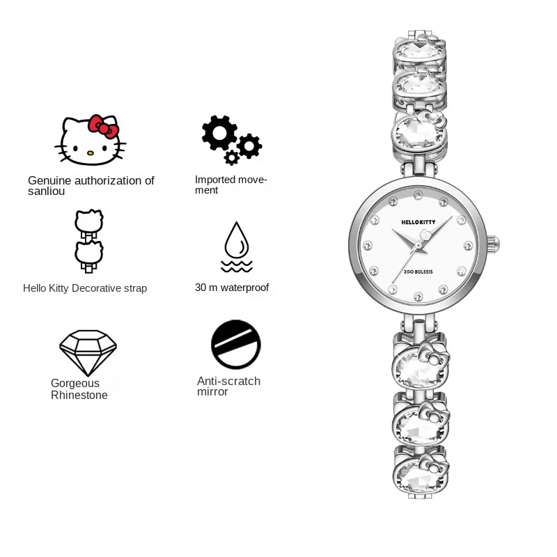 Sanrio-Reloj de Hello Kitty para mujer, pulsera de lujo con incrustaciones de diamantes de imitación, resistente al agua, estilo Anime, informal, para estudiantes