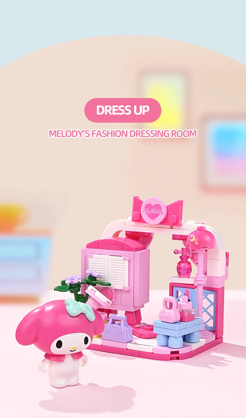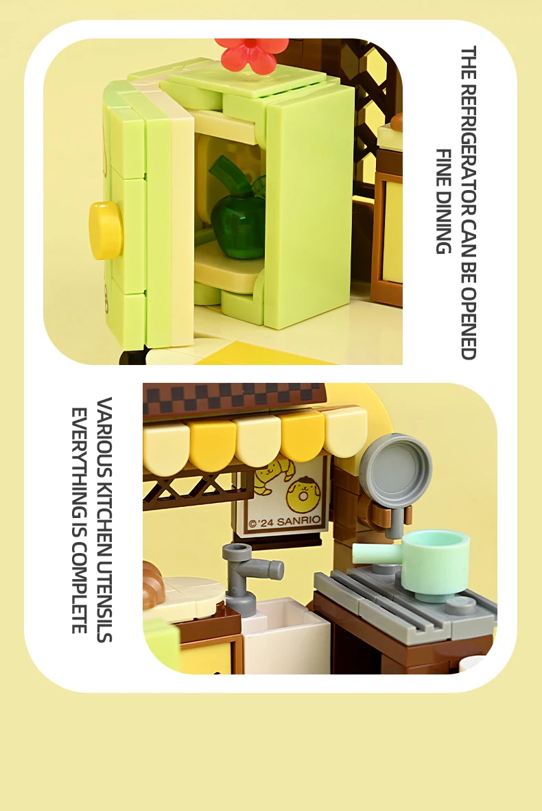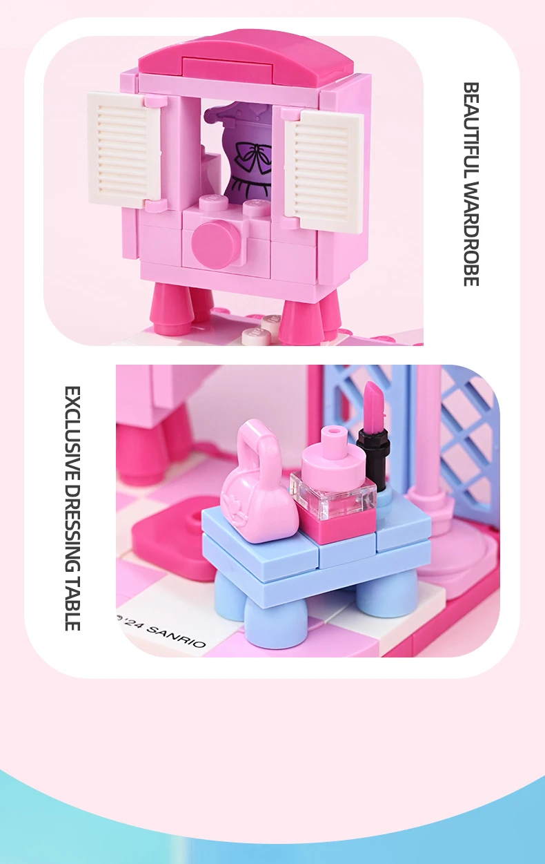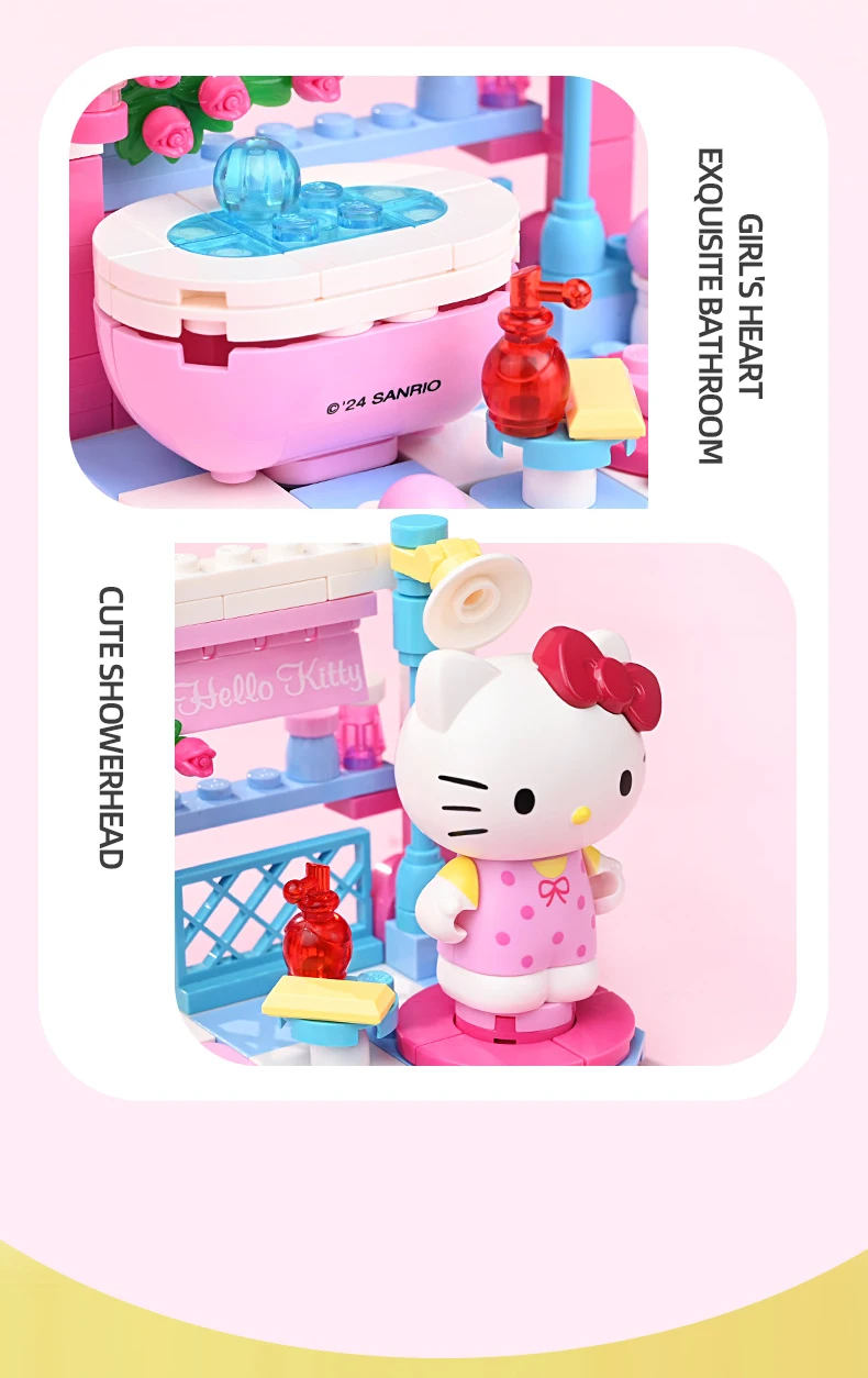 ✨Bloques de construcción con temática de Sanrio: este conjunto de bloques de construcción está inspirado en los populares personajes de Sanrio, incluidos Hello Kitty, Pochacco, Kuromi, Pom Pom Purin y más.Los niños pueden disfrutar creando sus propias escenas y aventuras de Sanrio con estos bloques coloridos y adorables.