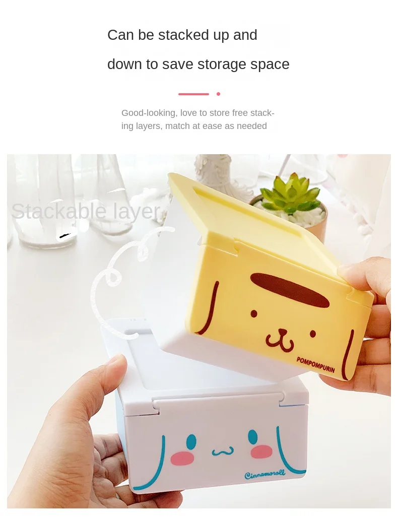 Sanrioed My Melody Cinnamoroll Kuromi Anime Desktop Flip Overlay Box Almacenamiento de dibujos animados Multi-capa Dresser Jewelry Cosmetic Box