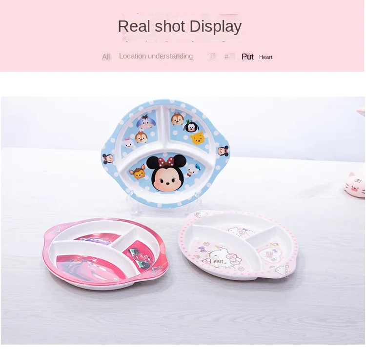 Comprar Sanrioed Kittly My Melody-plato de cena de 3 compartimentos, plato de cena Western Steak Fruit Bento Snack Steak Anime Kawaii Kid, vajilla de 25cm