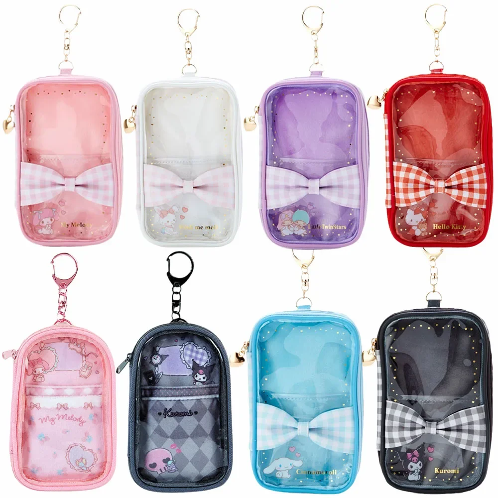 Comprar Sanrios HelloKittys Kuromi Cinnamoroll My Melody pompón Purins Pochacco almacenamiento colgante bolso para caminar Anime Kawaii estuche para lápices