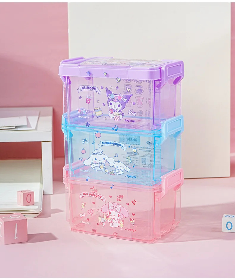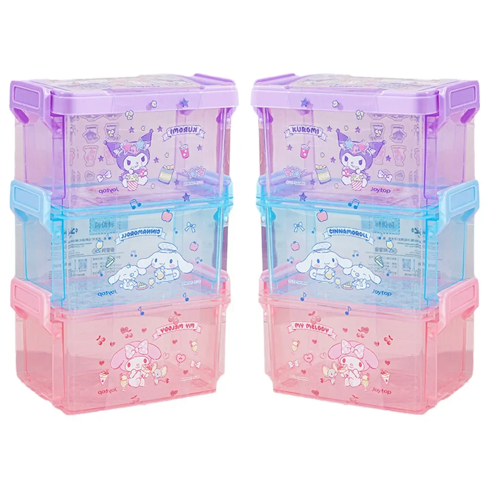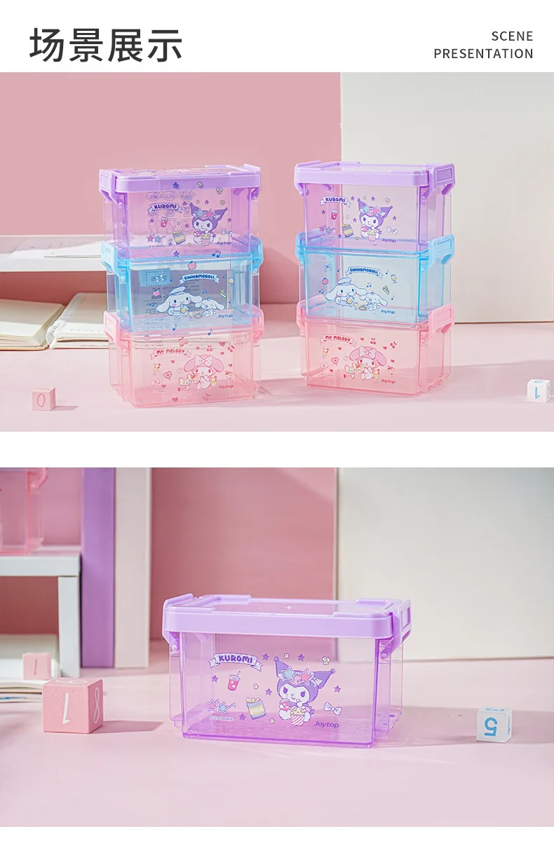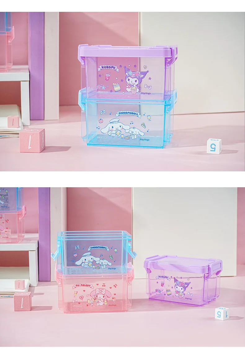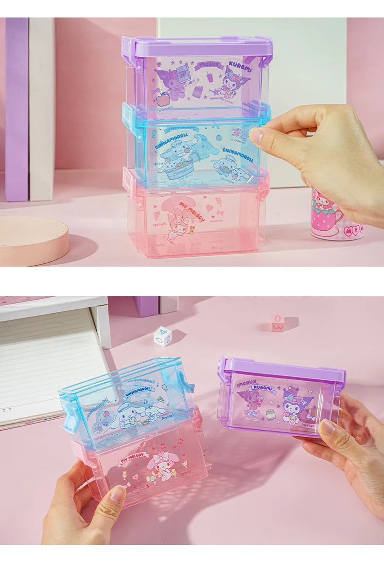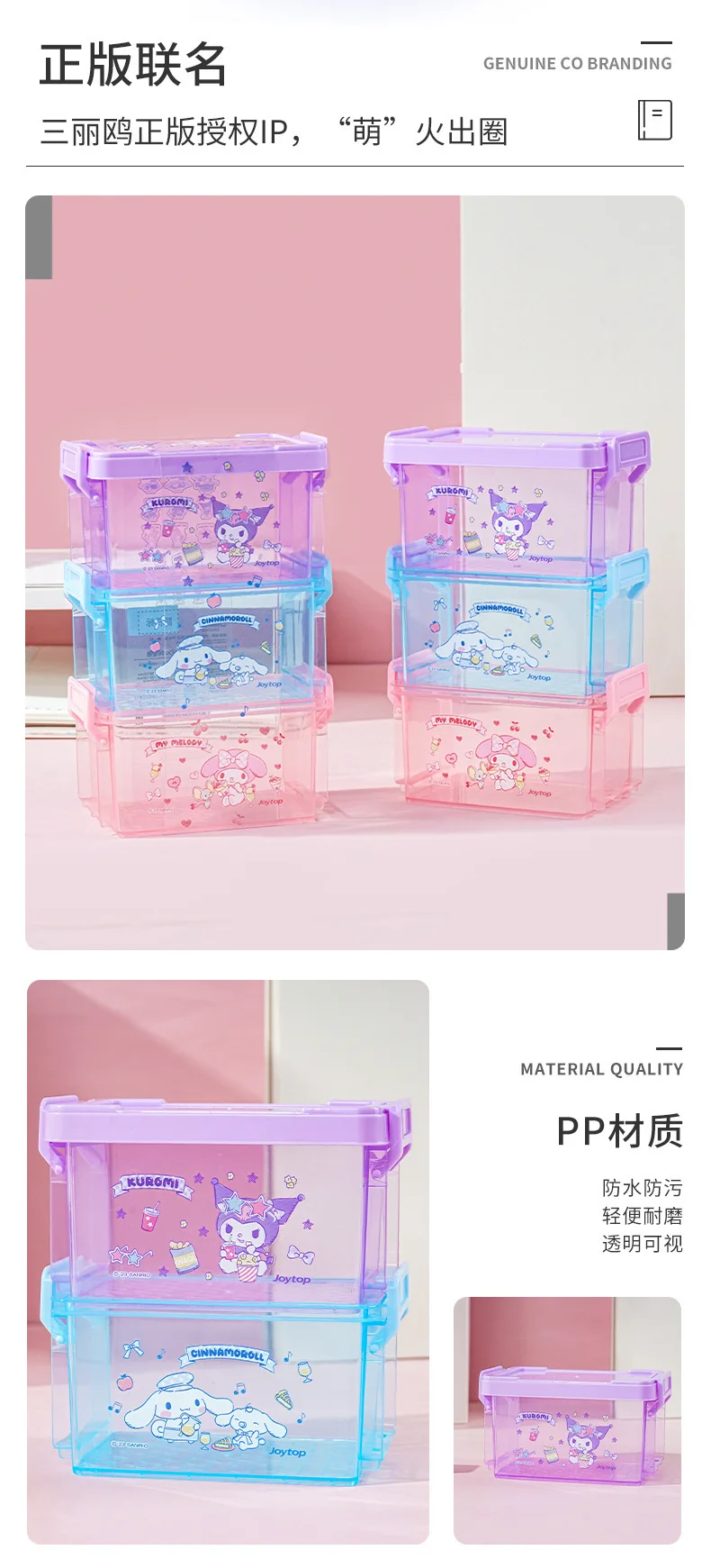 Sanrios Kuromi Cinnamoroll My Melody Pom Purins Hellokittys Pochacco Caja de almacenamiento de artículos diversos de comida apilada de tres capas Anime Kawaii