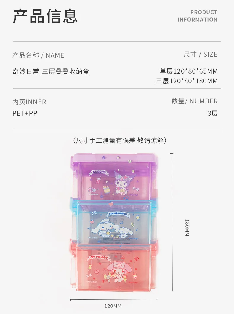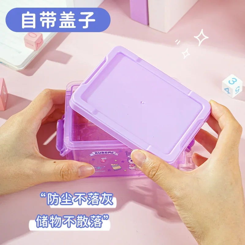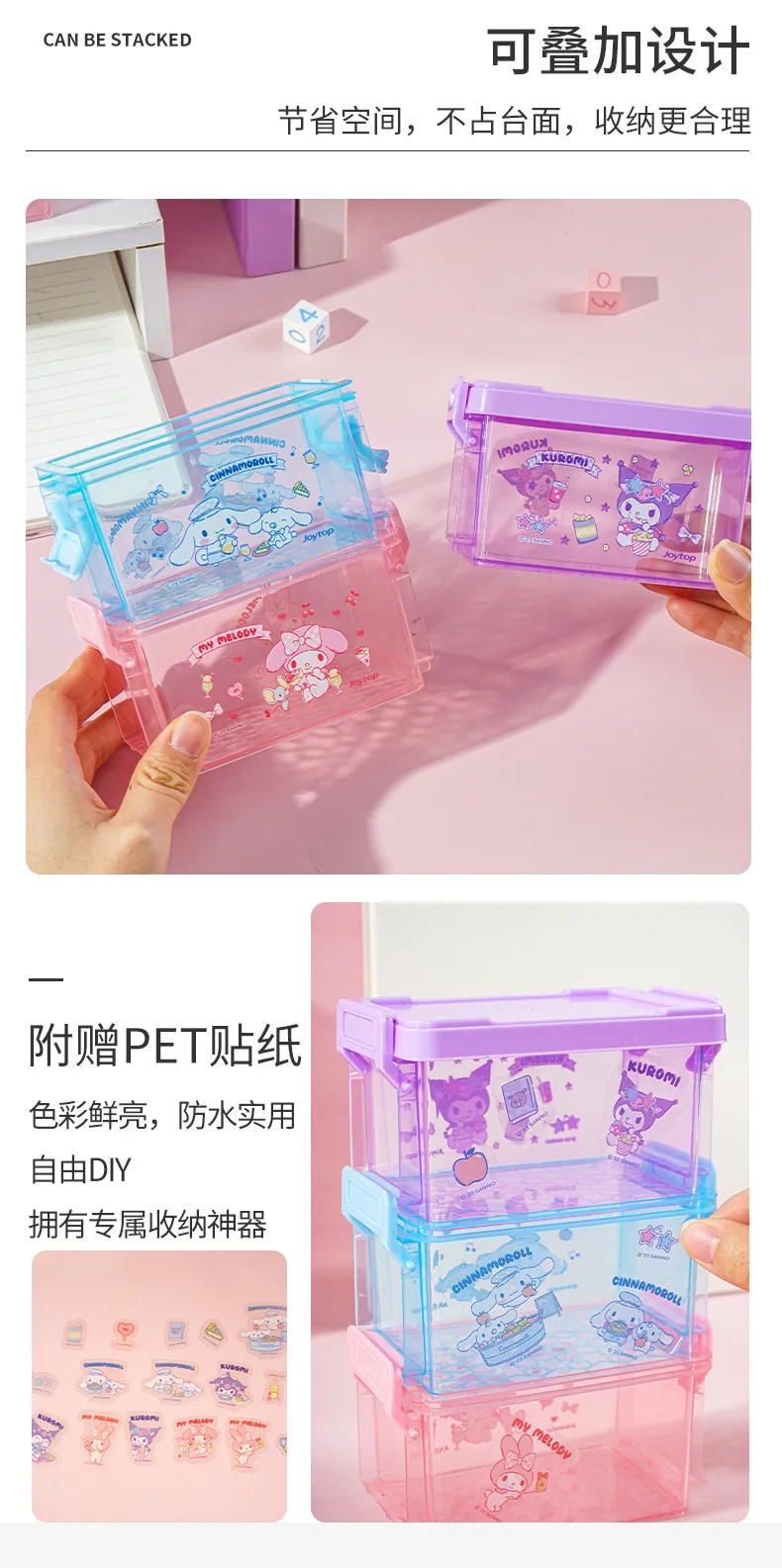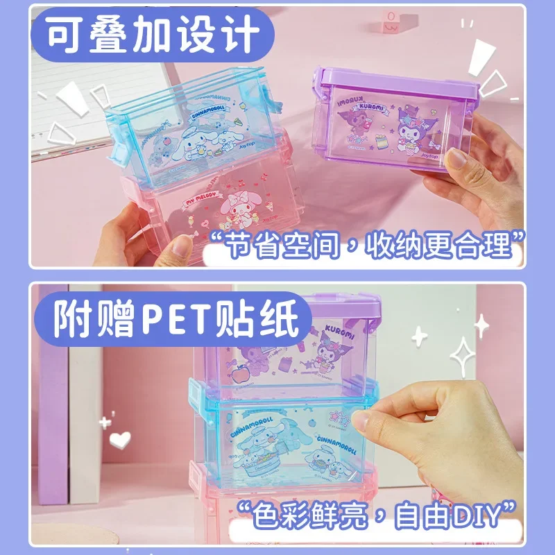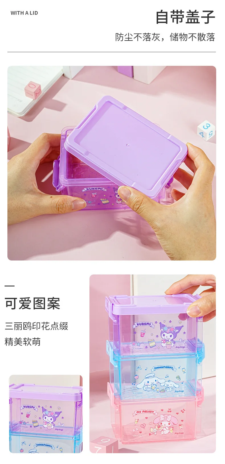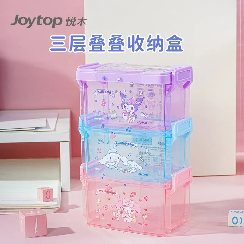 Sanrios Kuromi Cinnamoroll My Melody Pom Purins Hellokittys Pochacco Caja de almacenamiento de artículos diversos de comida apilada de tres capas Anime Kawaii