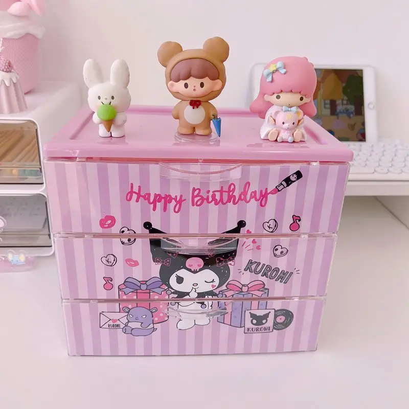 Sanrios Kuromi My Melody Cinnamoroll Littletwinstars-caja de almacenamiento de varios pisos para estudiantes, oficina, colocación de cosméticos, regalos para niños
