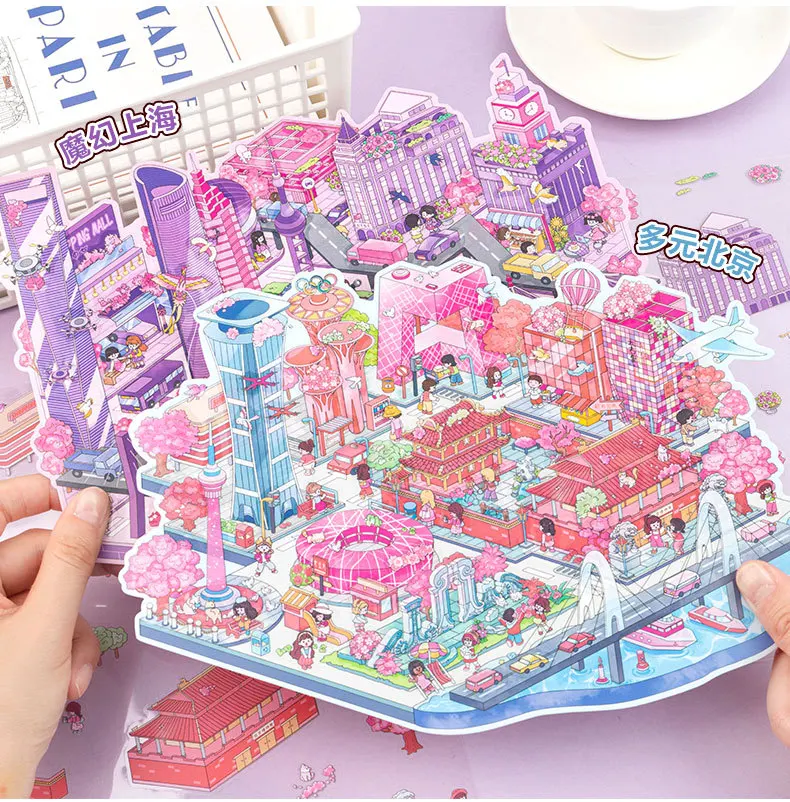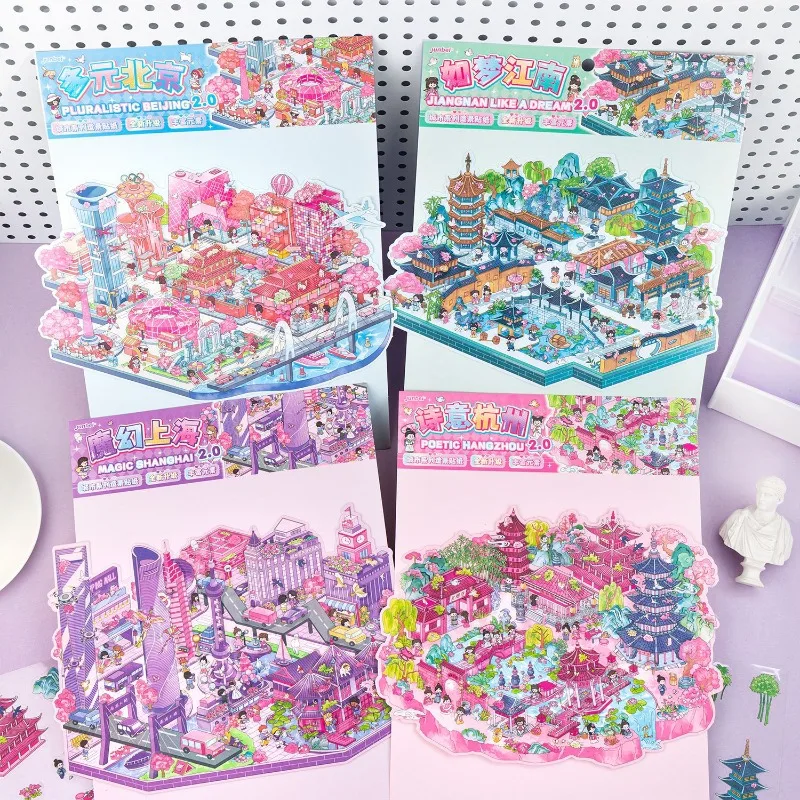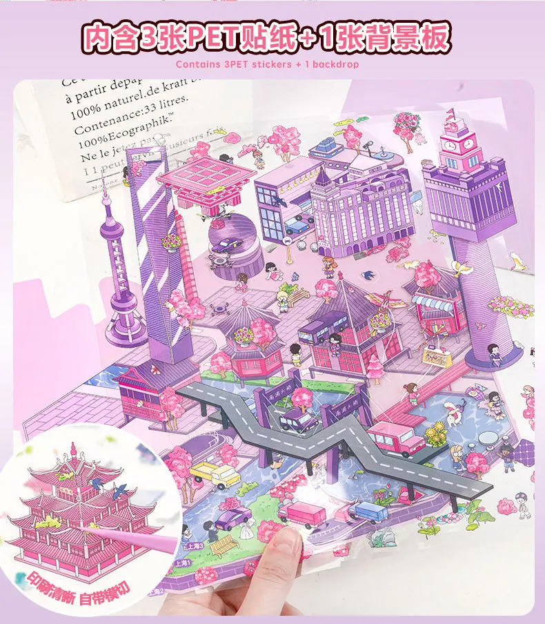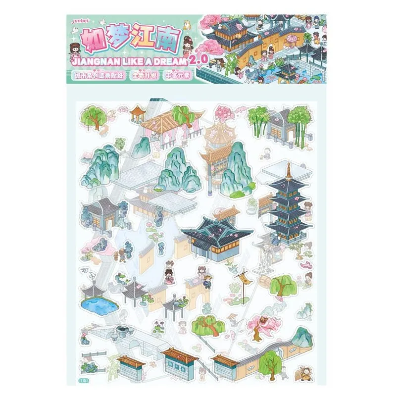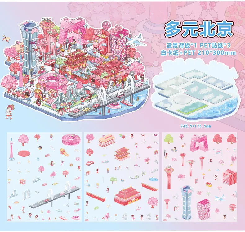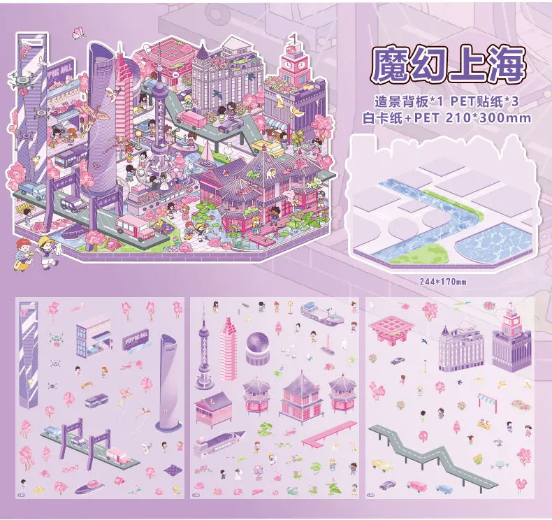 Comprar [Serie de colección de ciudades] Pegatinas escénicas grandes, papelería, suministros para diario de ciudades delicadas en miniatura