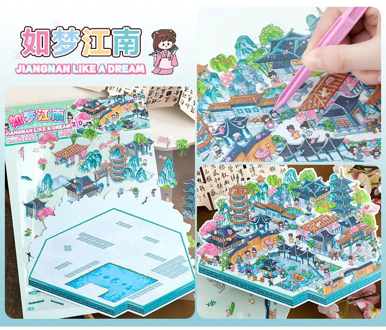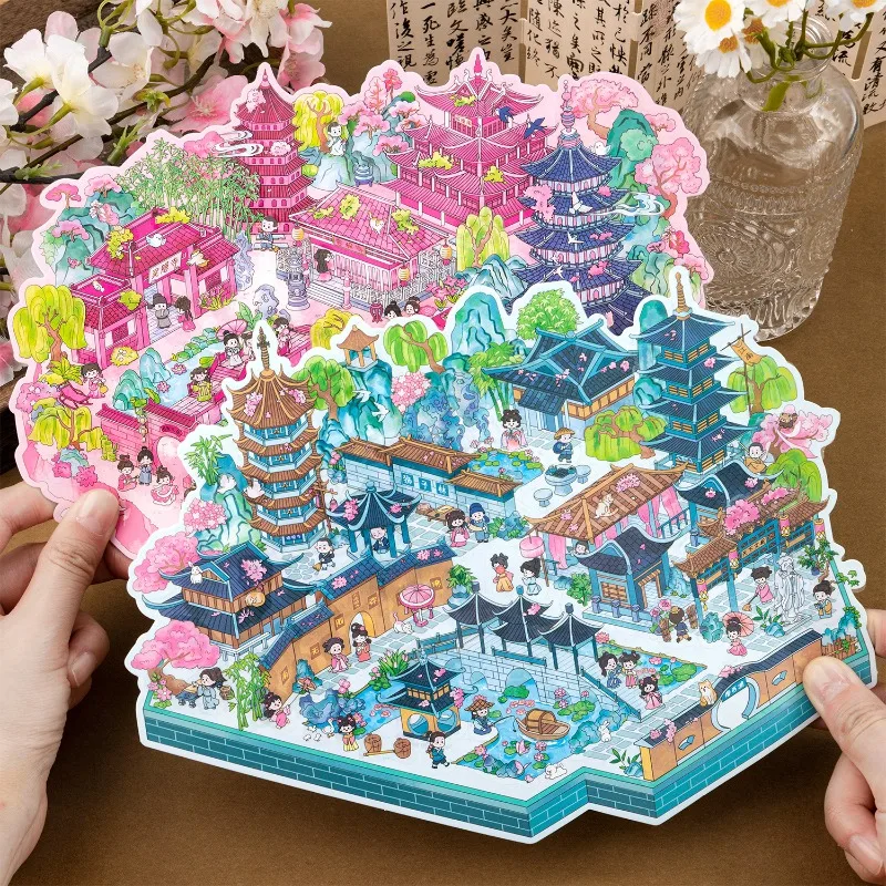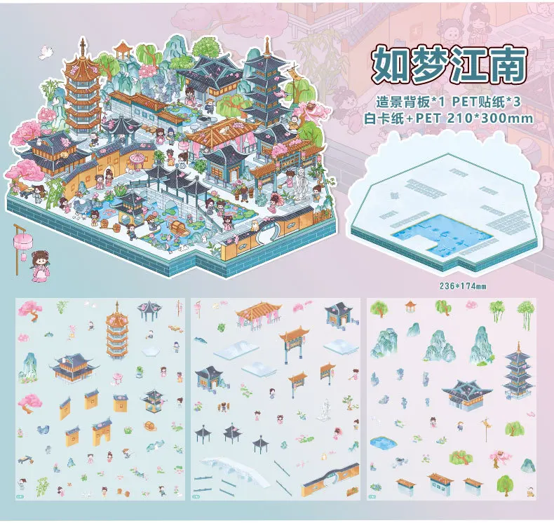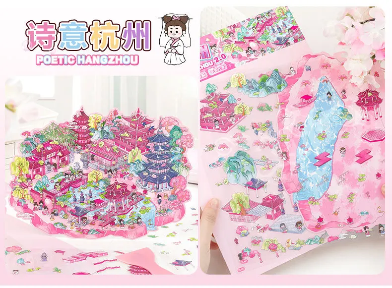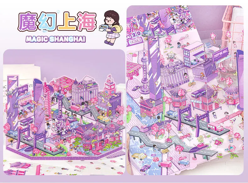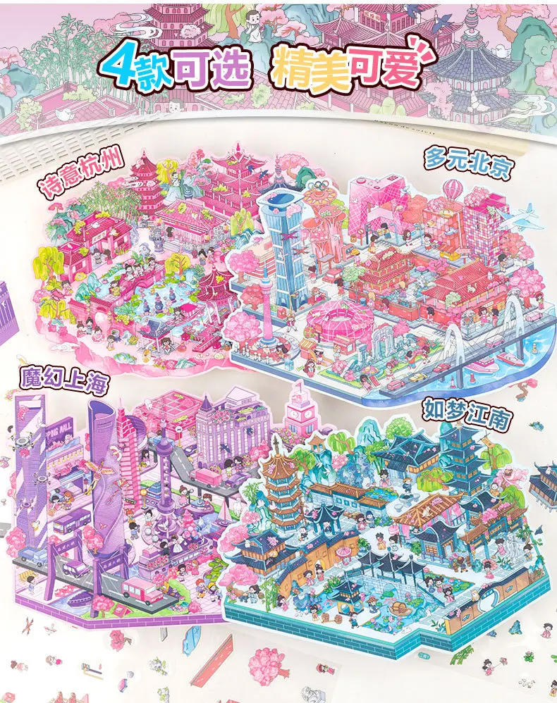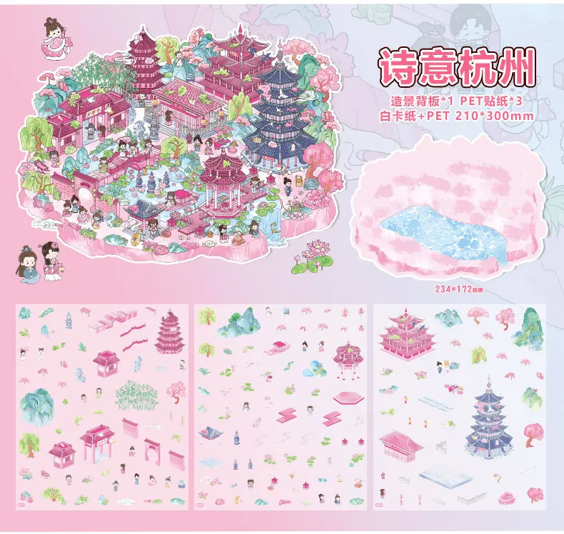 Comprar [Serie de colección de ciudades] Pegatinas escénicas grandes, papelería, suministros para diario de ciudades delicadas en miniatura