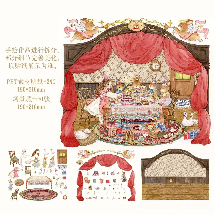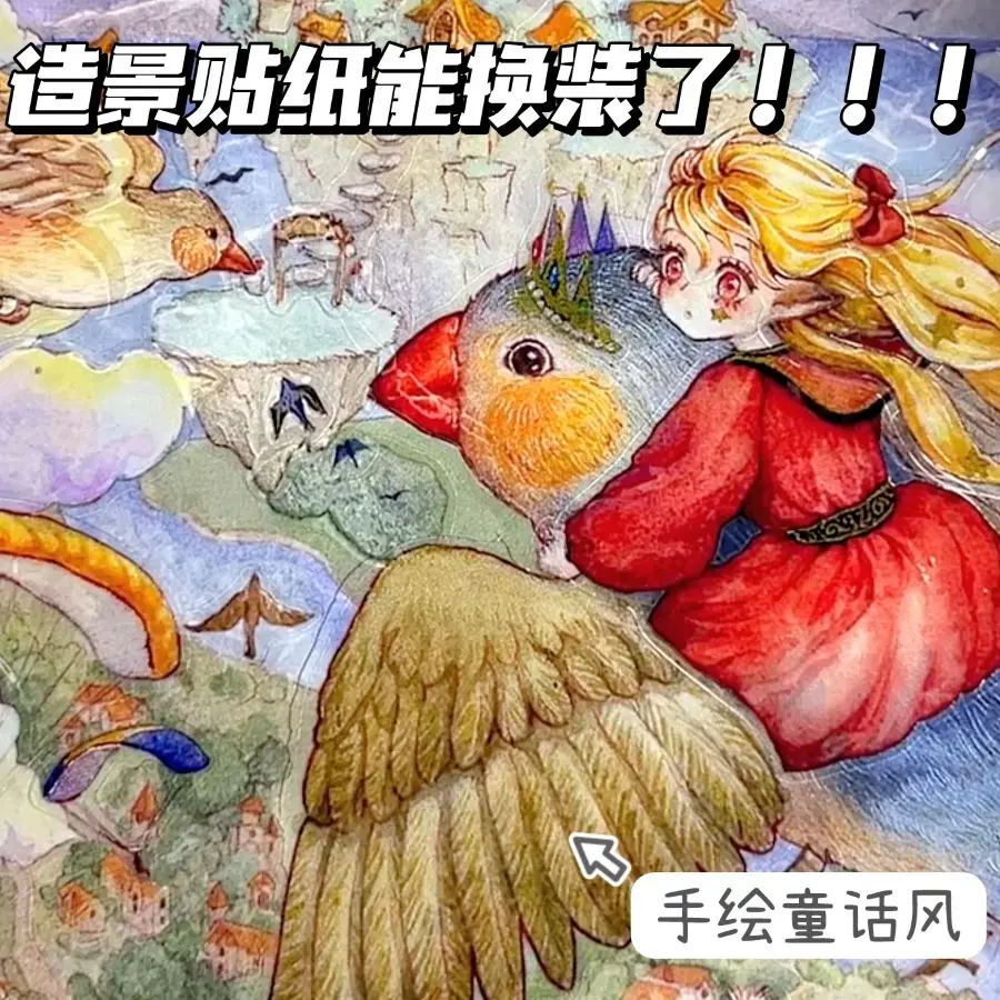 Serie dibujada a mano, acuarela, cachorro de cuento de hadas, pegatinas de creación de escena en miniatura 3D verdes, pegatinas de decoración artística DIY