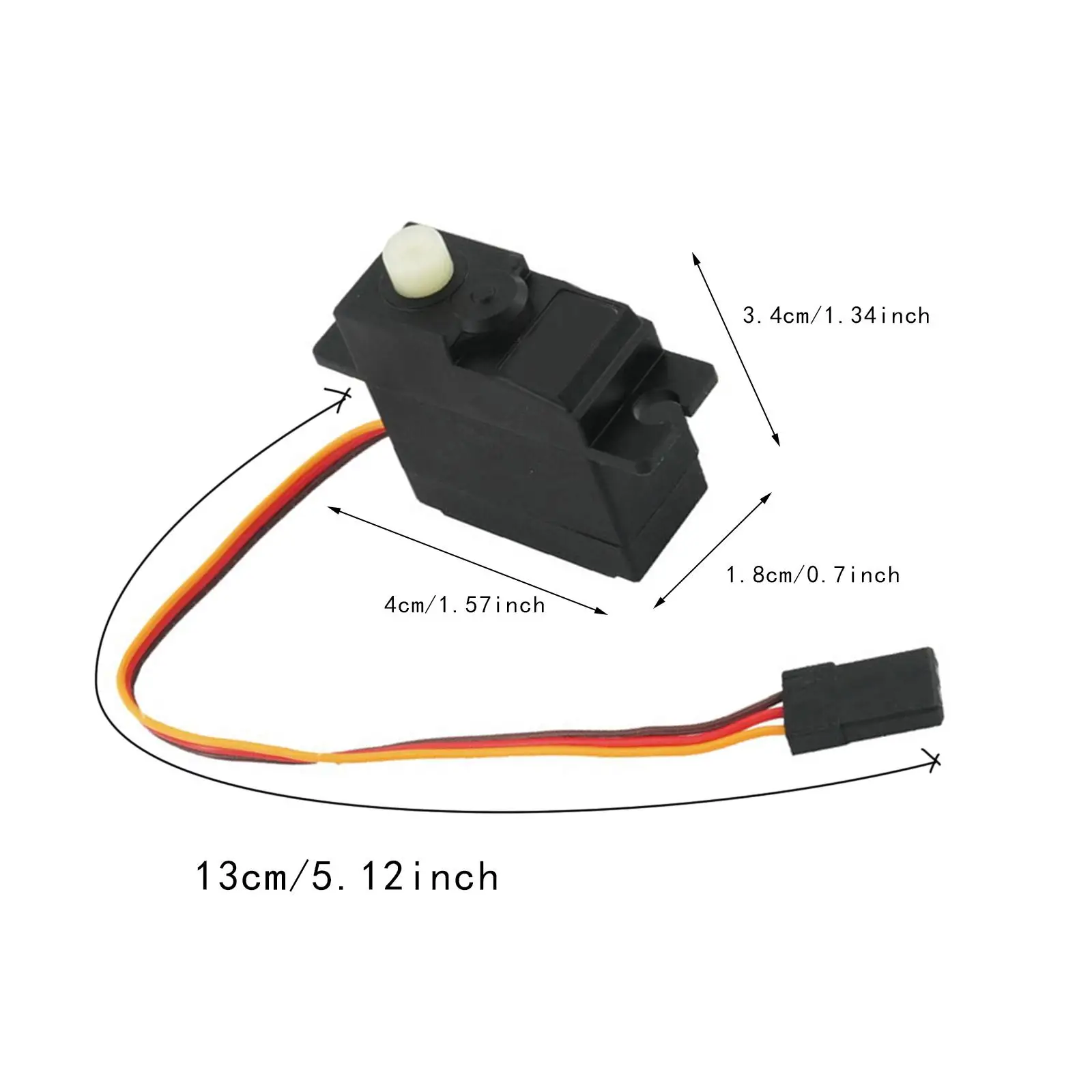 【Dimensiones】: Con un tamaño compacto de 4*3,4*1,8 CM y una longitud de cable de 13 CM, este servo puede caber fácilmente en su automóvil RC sin ocupar demasiado espacio.
