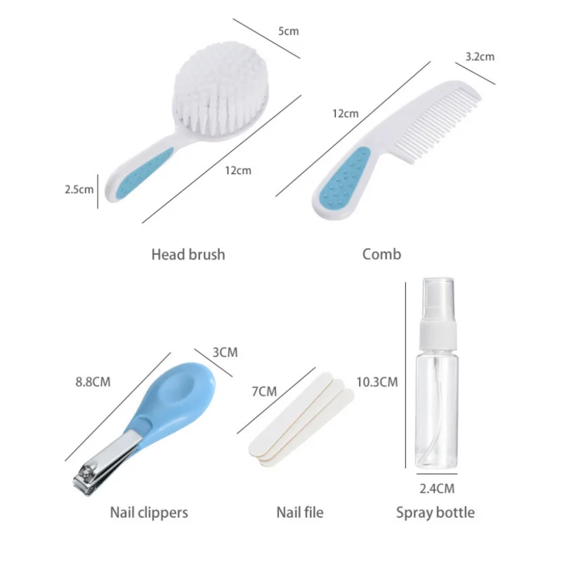 Set de cuidado y limpieza para bebés, peine para bebés, cepillo, botella pulverizadora, juego de cortaúñas, productos de limpieza y cuidado diario