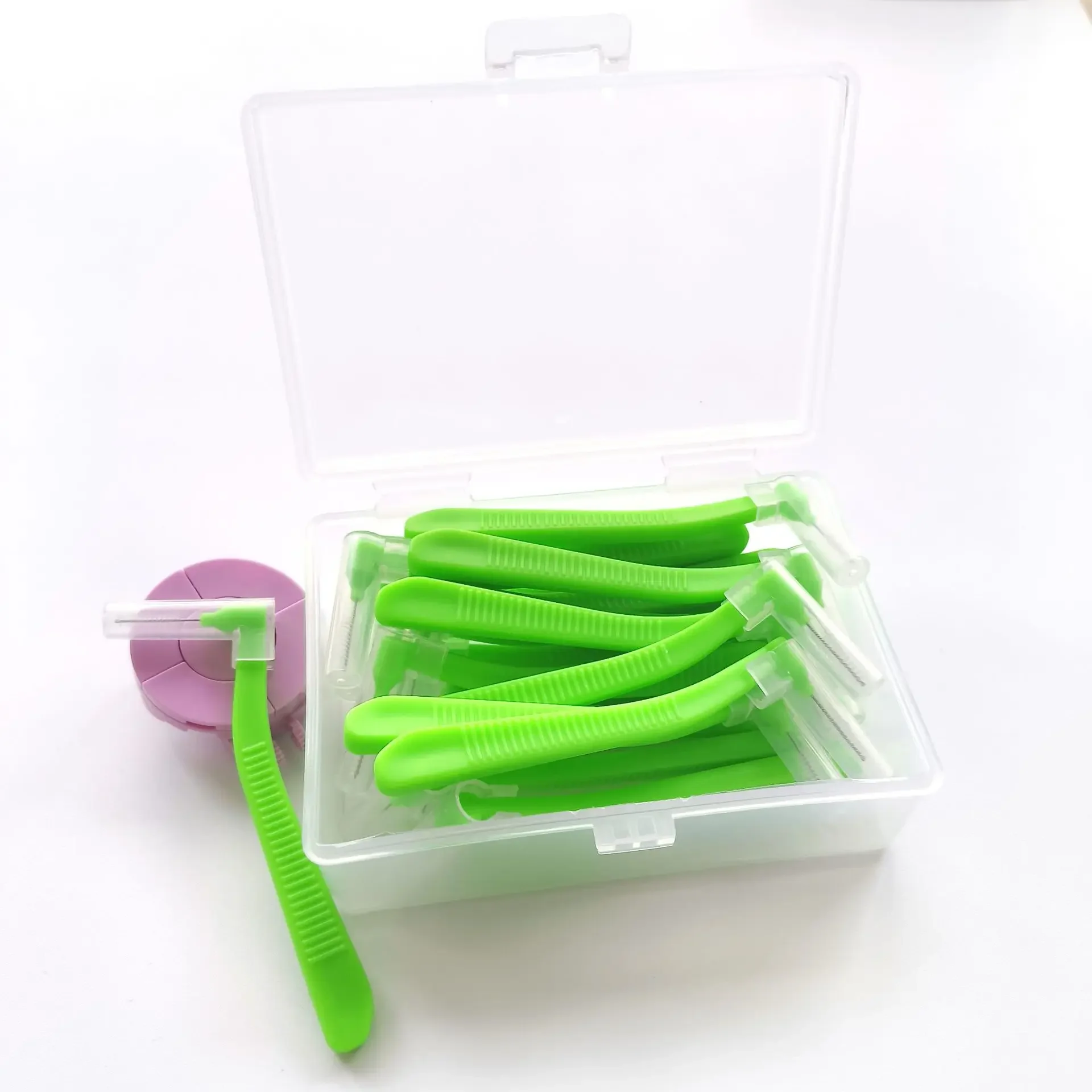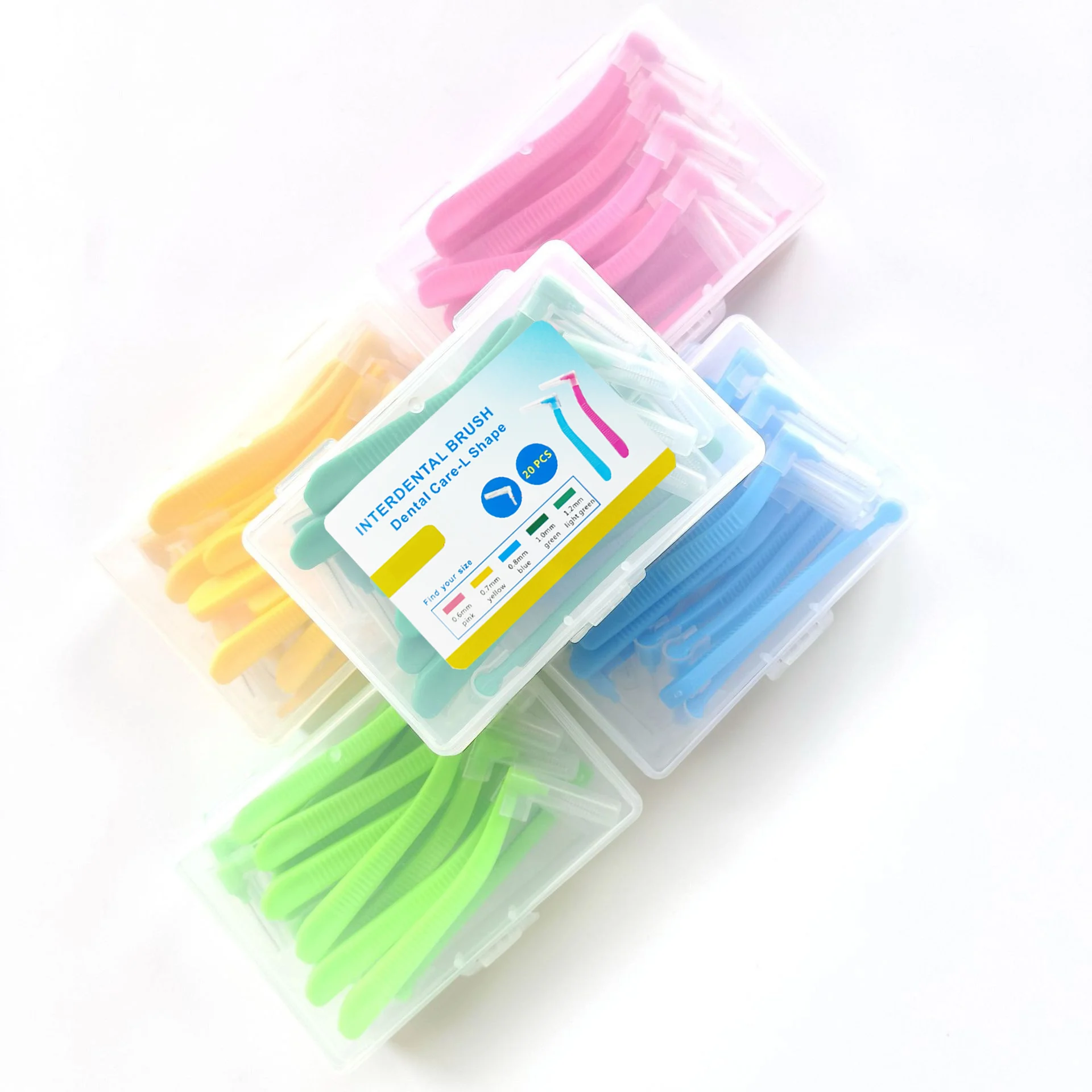 20 unids/caja 0,6-1.2mm forma de L cepillo interdental herramienta Dental de ortodoncia limpieza de dientes palillo de dientes higiene bucal hilo dental