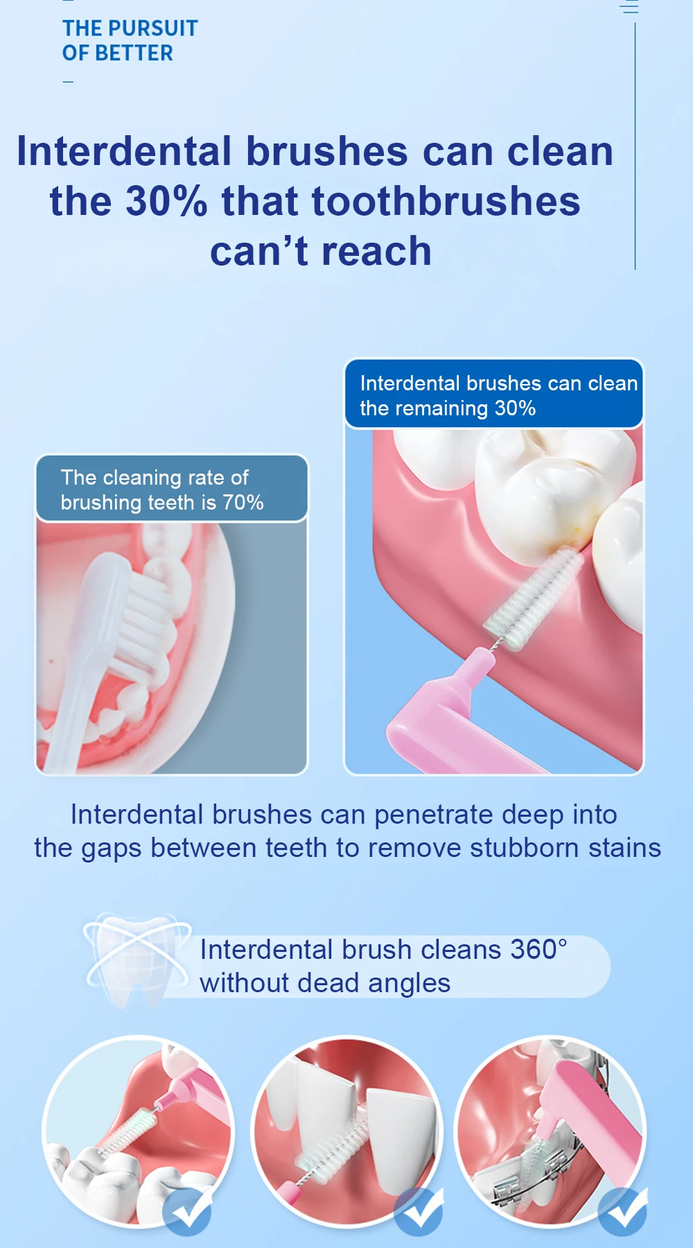 Los cepillos interdentales pueden limpiar el 30% que el cepillo de dientes no puede alcanzar
