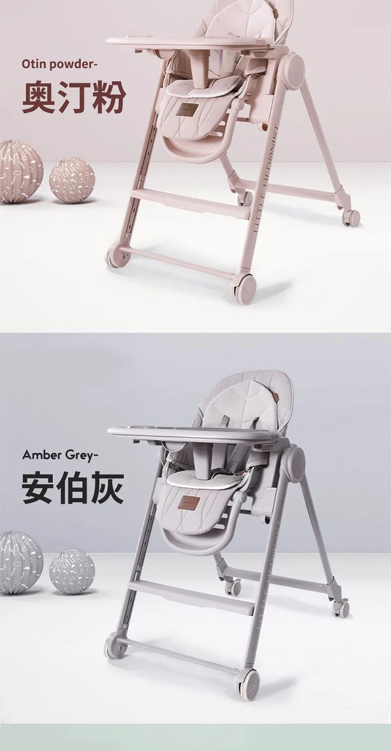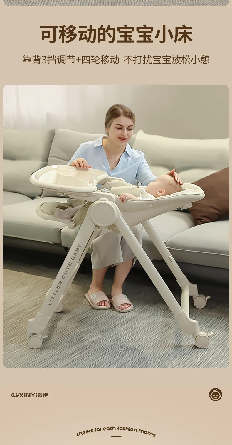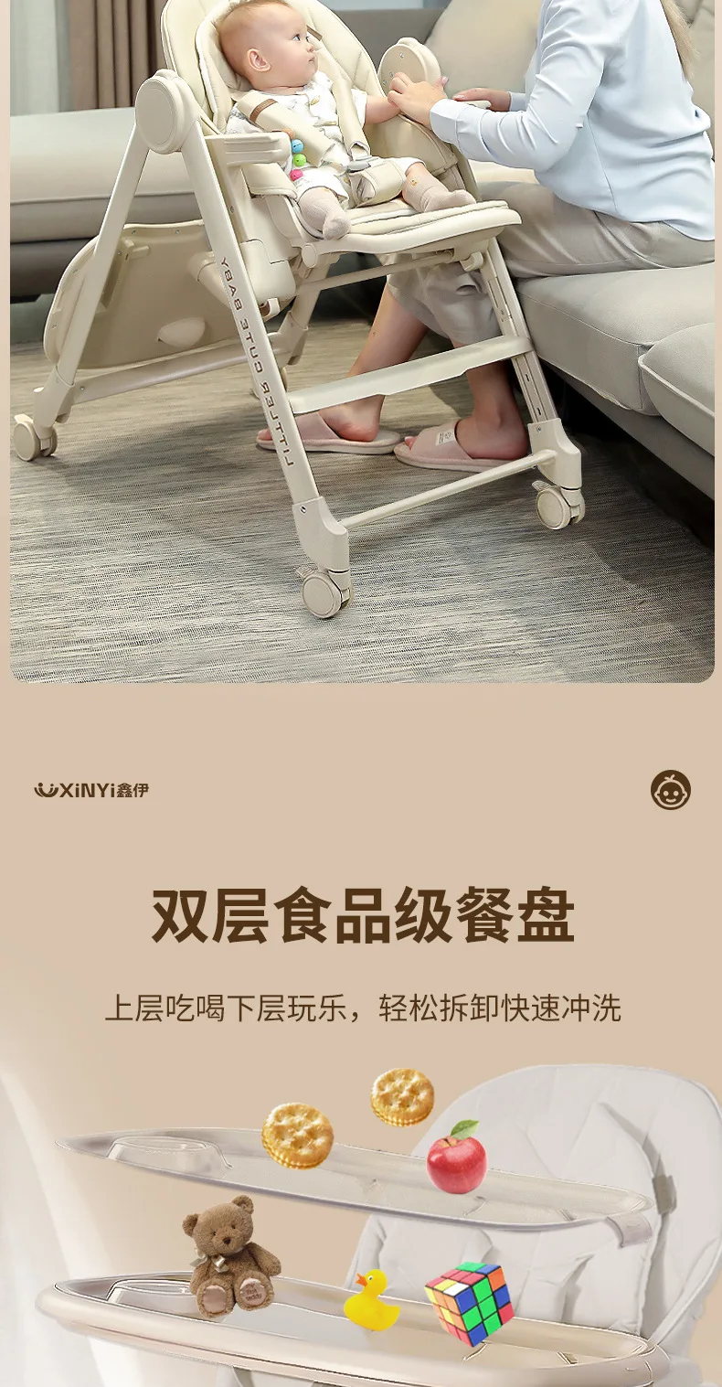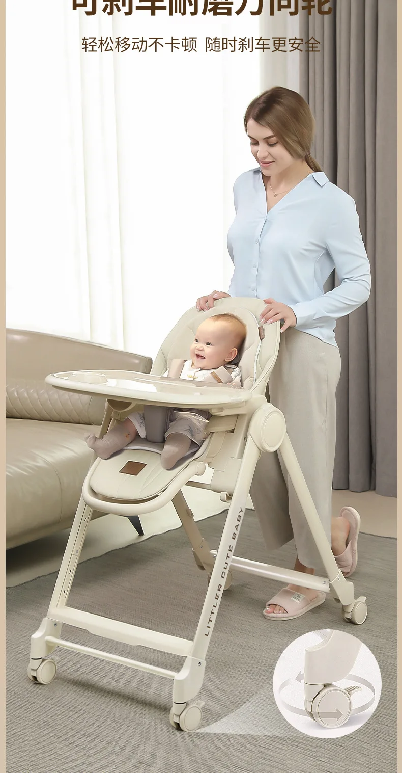 Silla alta ajustable para bebé, función reclinable, ruedas duraderas, asiento de comedor para niños pequeños, seguro para niños con arnés de 5 puntos