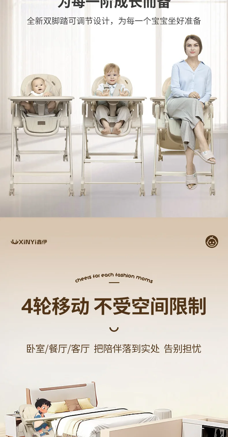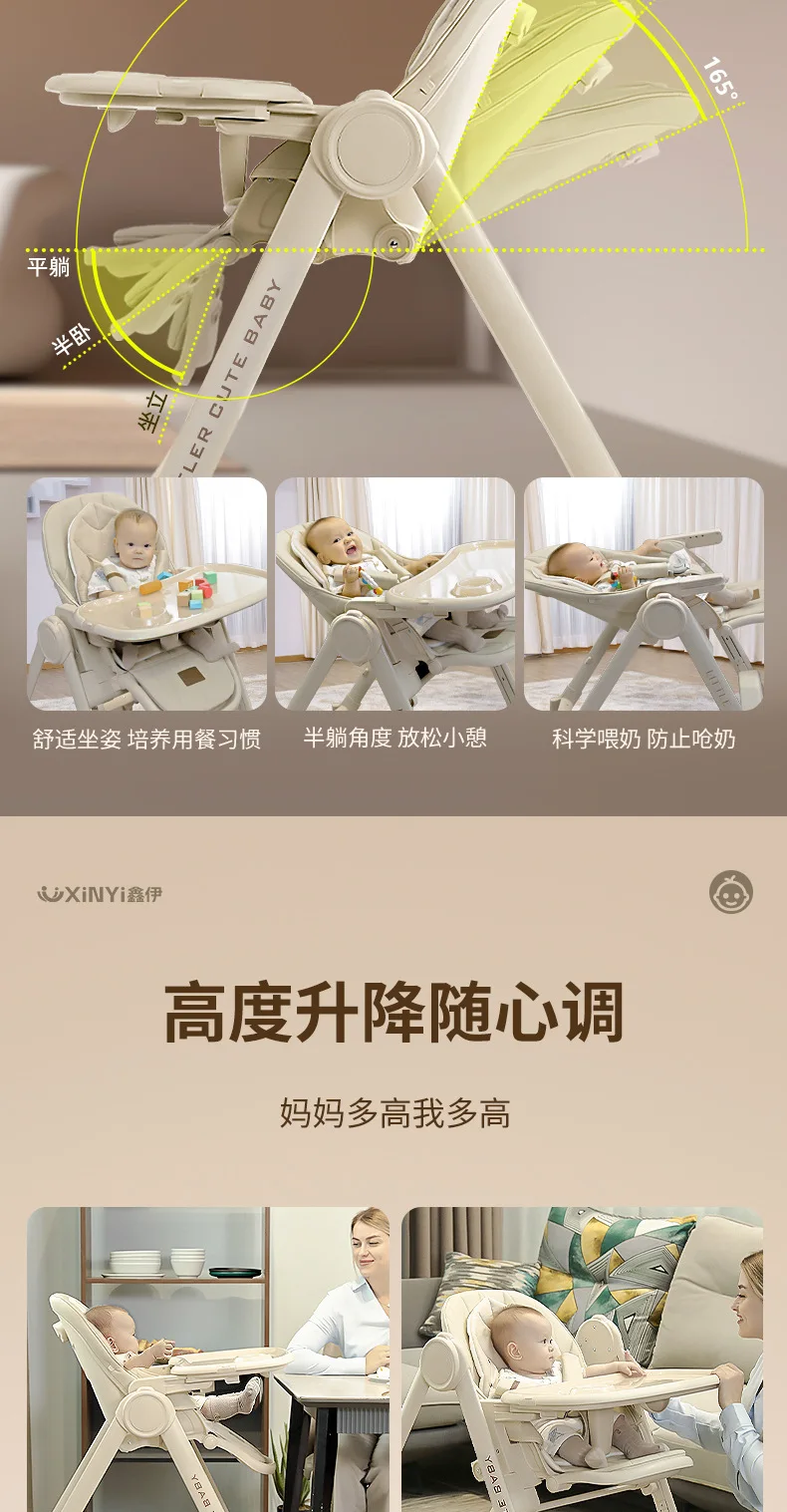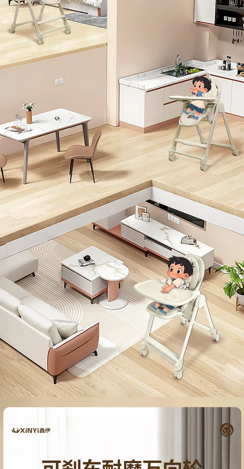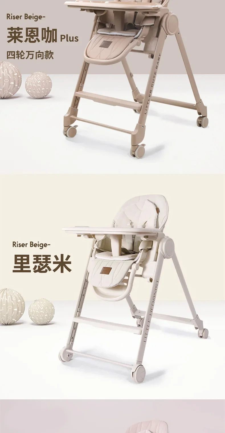 Silla alta ajustable para bebé, función reclinable, ruedas duraderas, asiento de comedor para niños pequeños, seguro para niños con arnés de 5 puntos