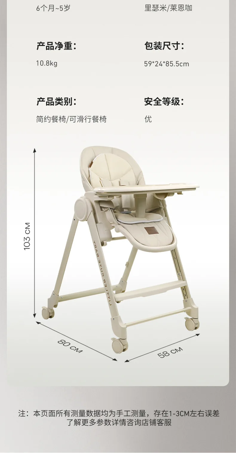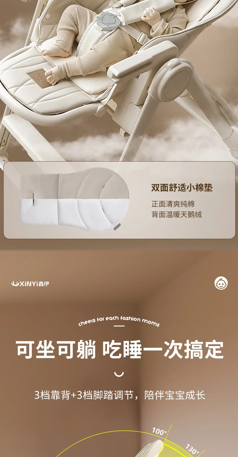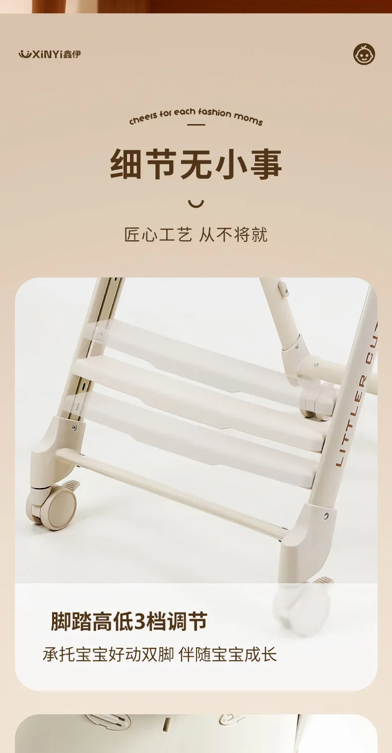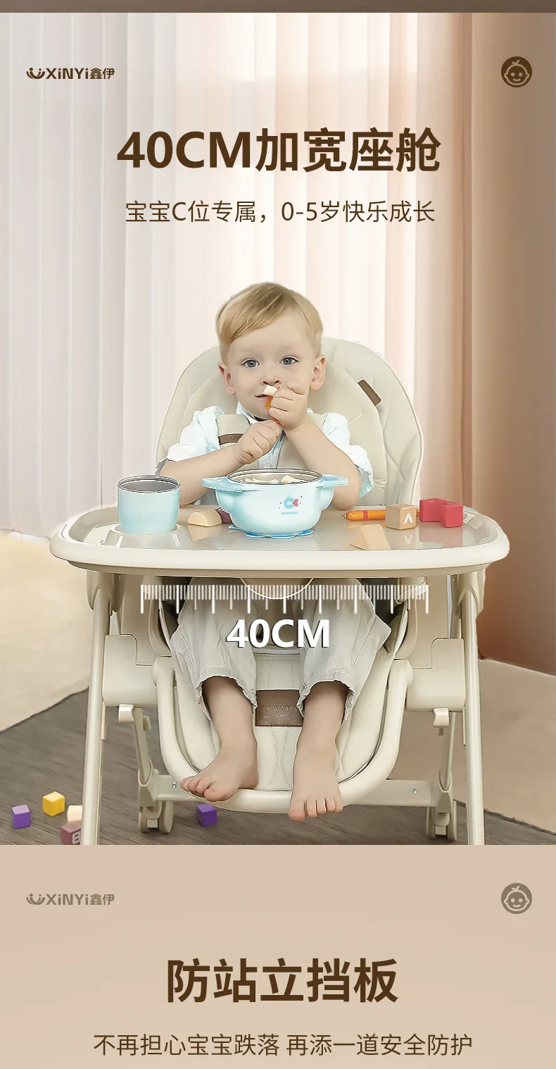 Silla alta ajustable para bebé, función reclinable, ruedas duraderas, asiento de comedor para niños pequeños, seguro para niños con arnés de 5 puntos