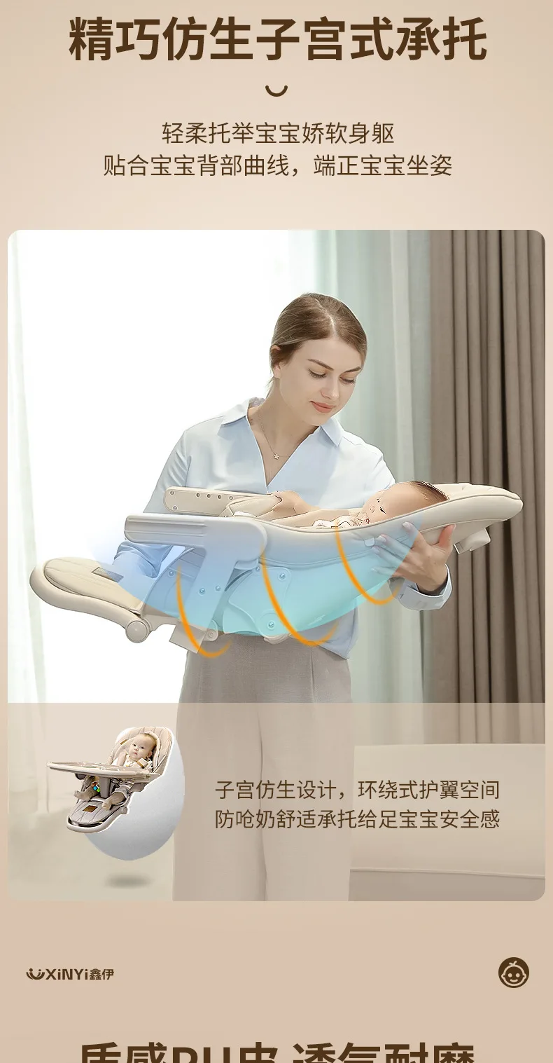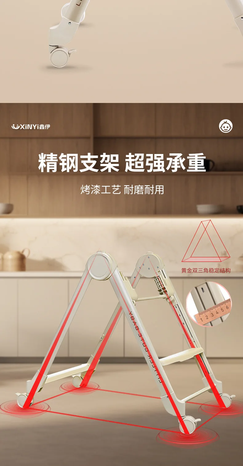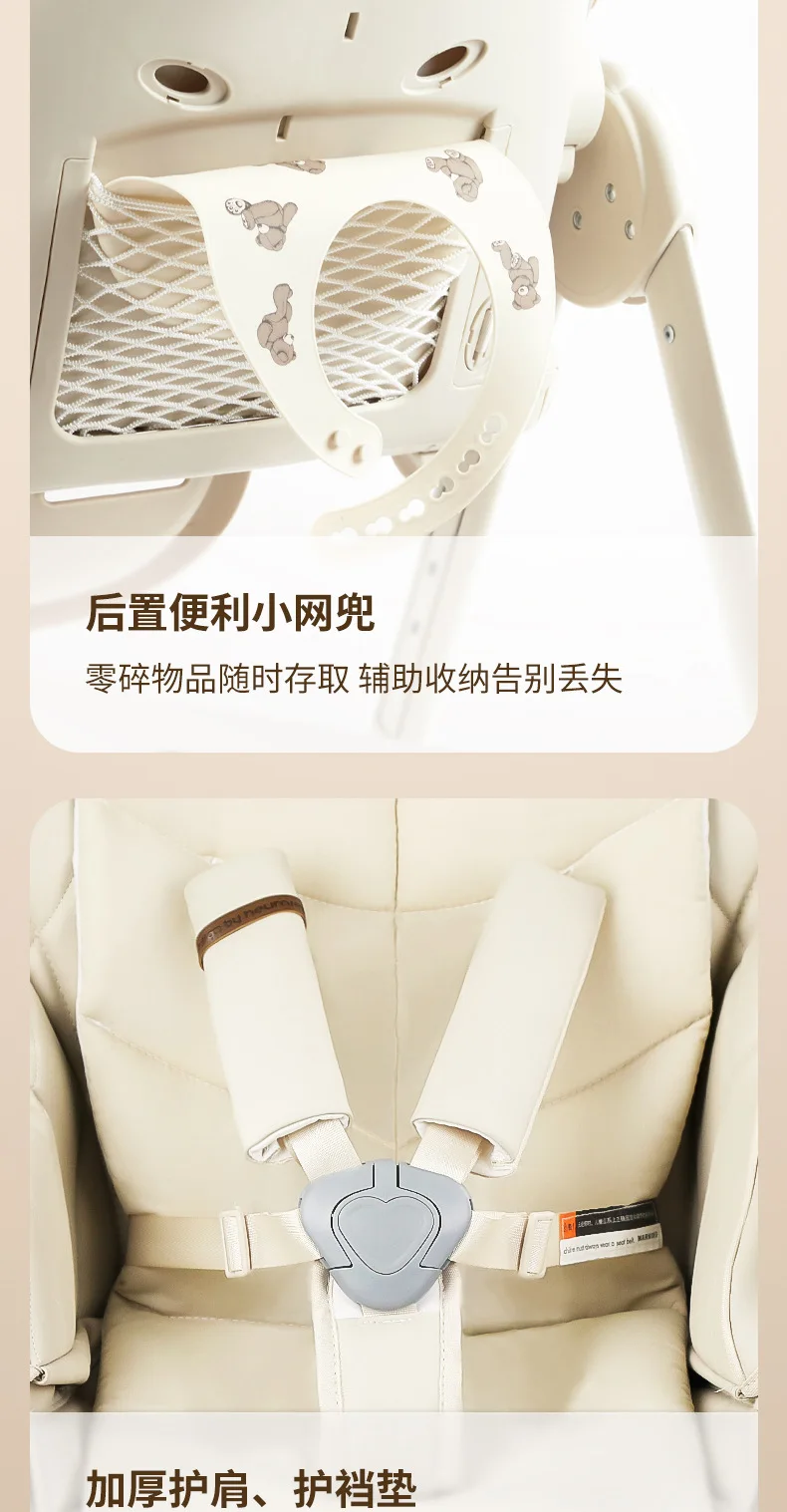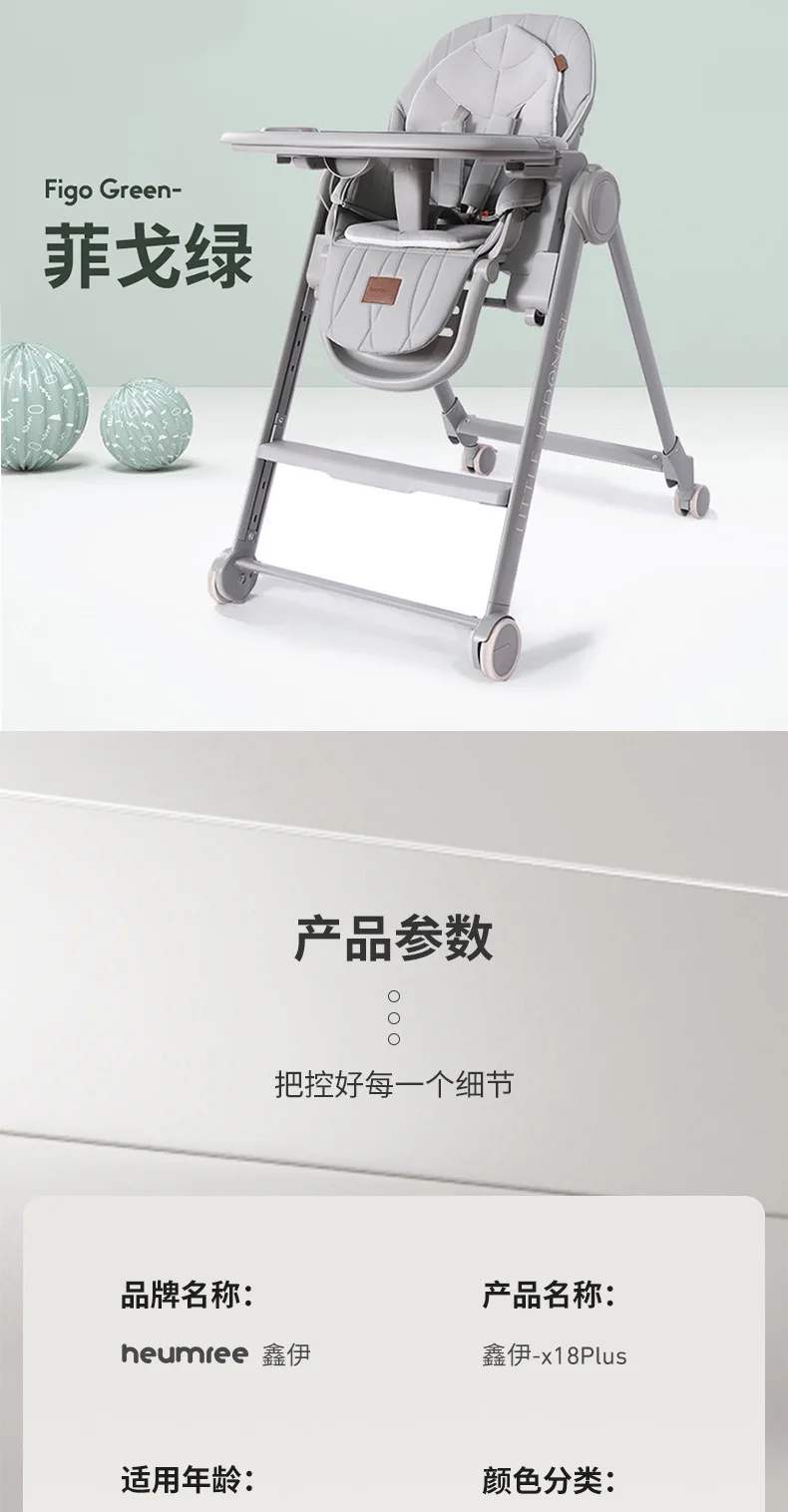 Silla alta ajustable para bebé, función reclinable, ruedas duraderas, asiento de comedor para niños pequeños, seguro para niños con arnés de 5 puntos
