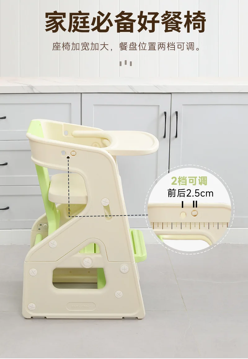 Silla alta convertible de 5 posiciones, asiento de alimentación de bebé reclinable ajustable con bandeja, reposapiés certificado por los estándares de seguridad ASTM