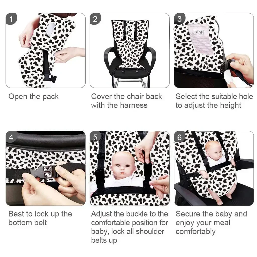 Fácil de instalar: una vez que tenga la funda del asiento de su silla alta sobre la parte superior de la silla, solo necesita sujetarla rápidamente en segundos tirando del cinturón de la silla hacia atrás.Desde allí es muy fácil conectar los dos extremos y apretar según sea necesario.