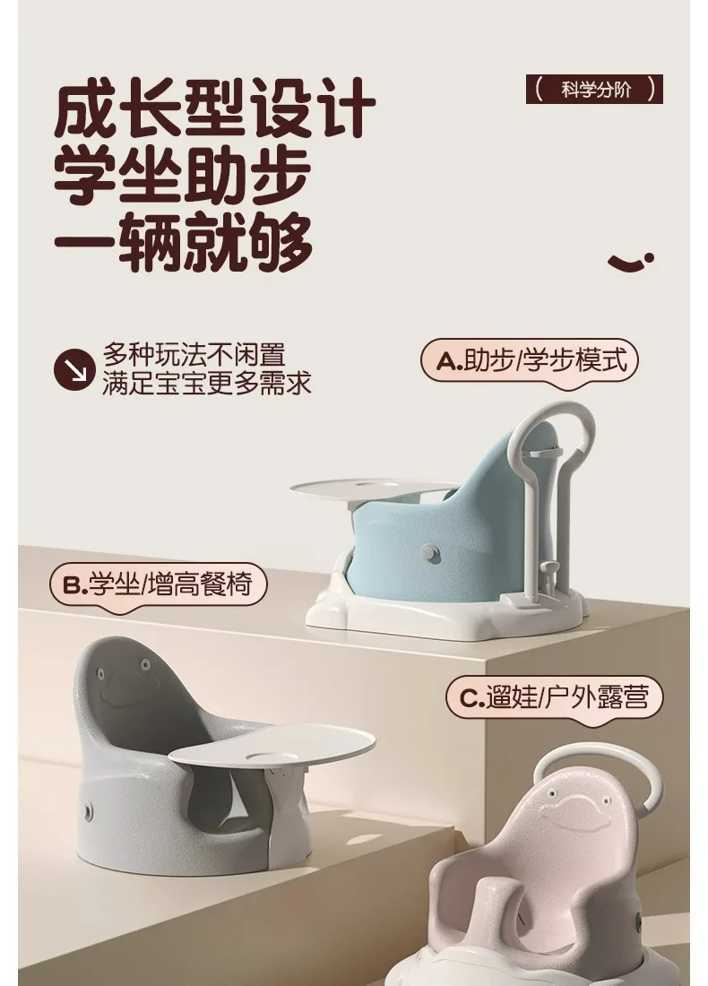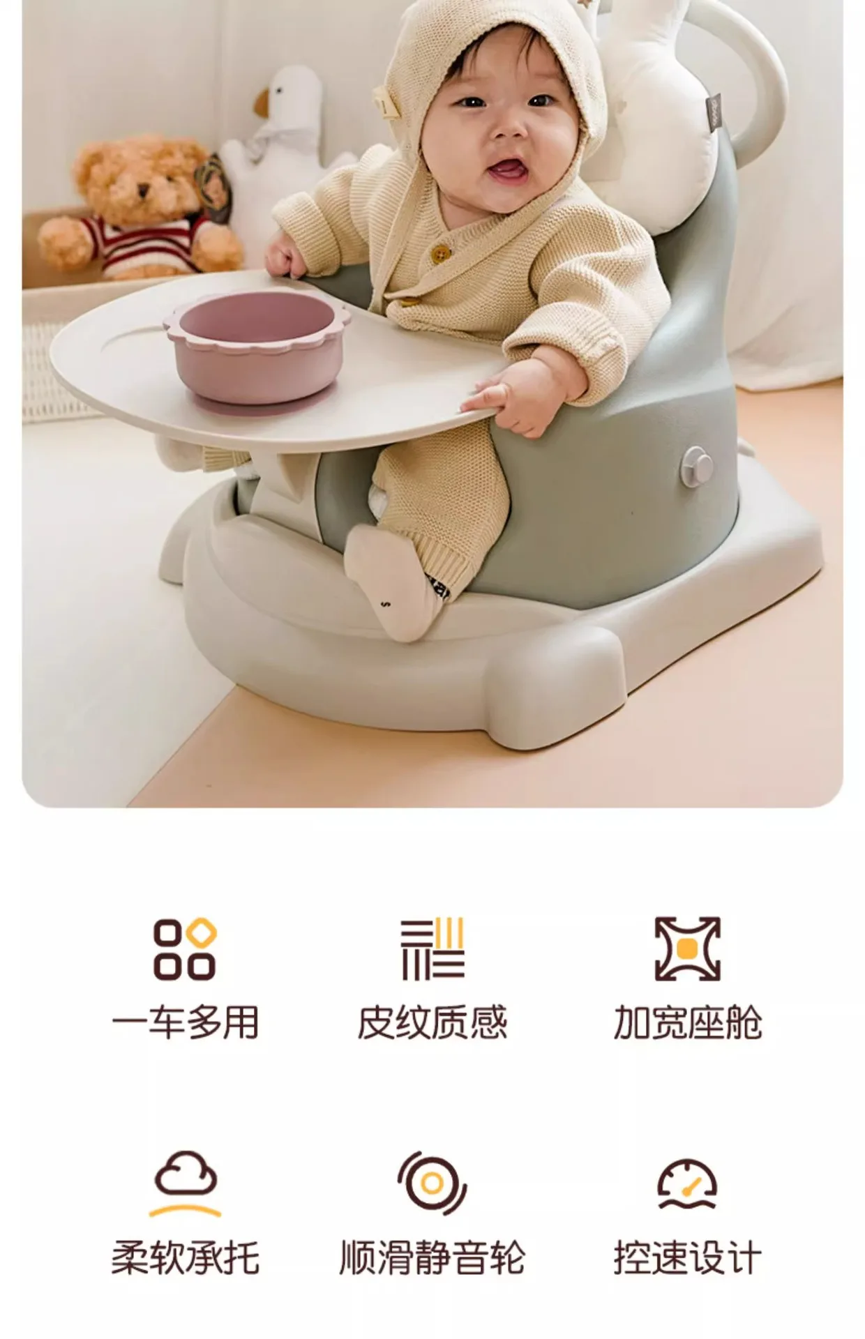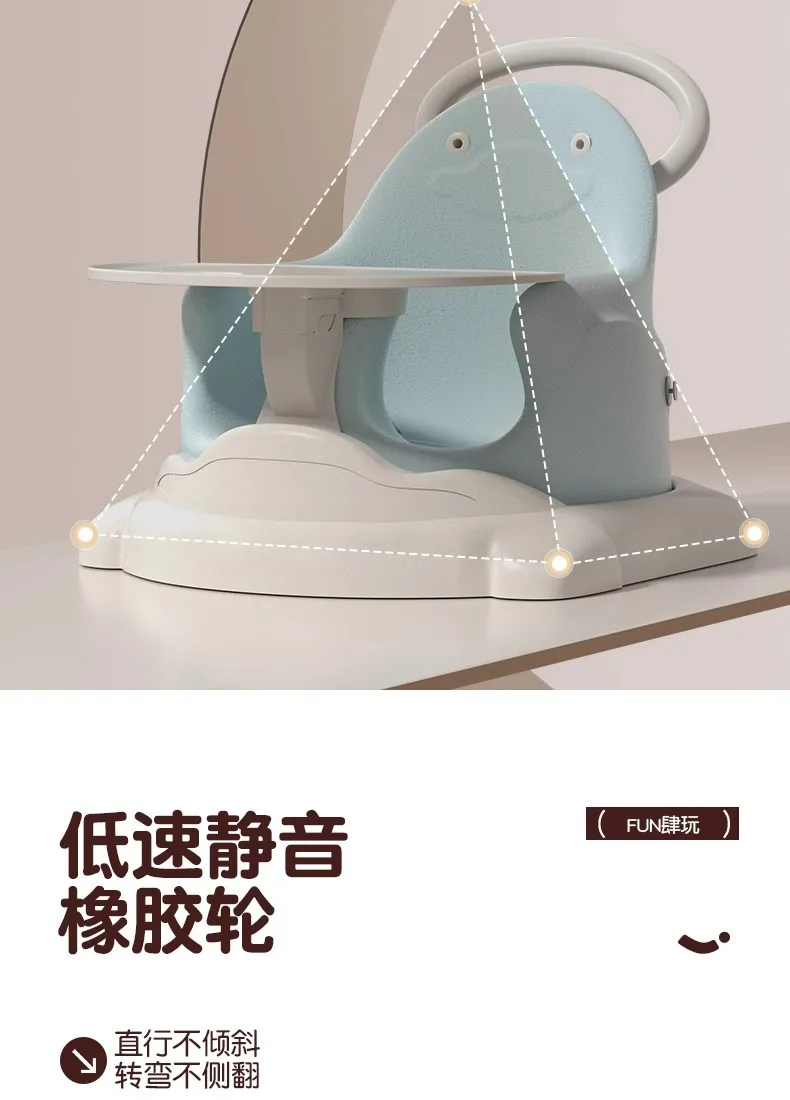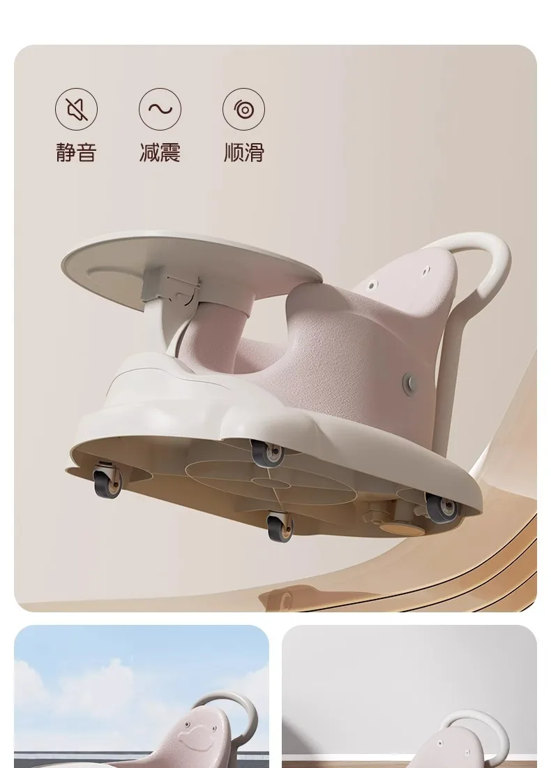 Silla de aprendizaje multifuncional, silla de asiento estable de bajo centro, asiento de aprendizaje con ruedas de goma silenciosa, silla de cochecito de PU para niños pequeños