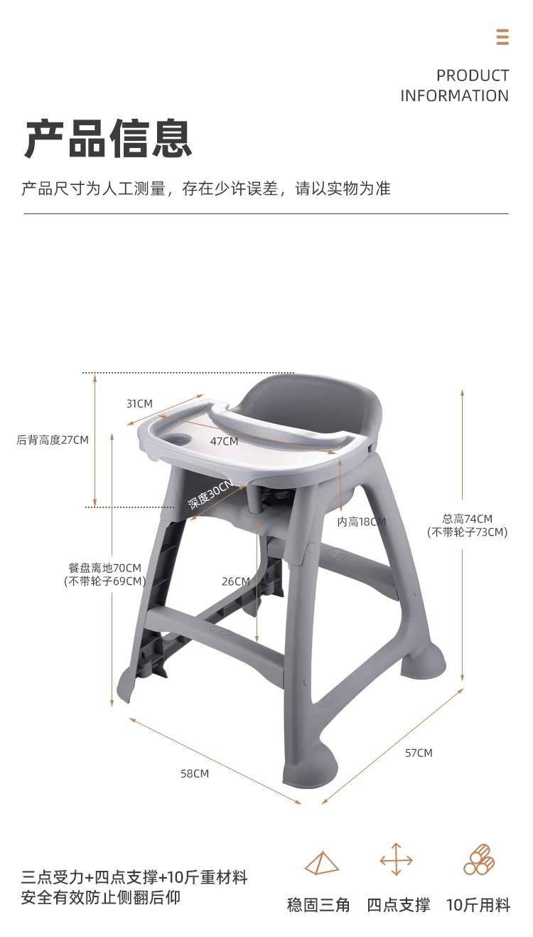 Silla de comedor para bebé, mesa de comedor para el hogar, restaurante comercial, restaurante KFC, silla de comedor para niños fácil