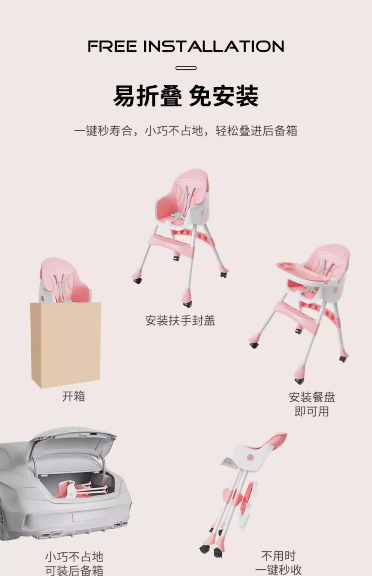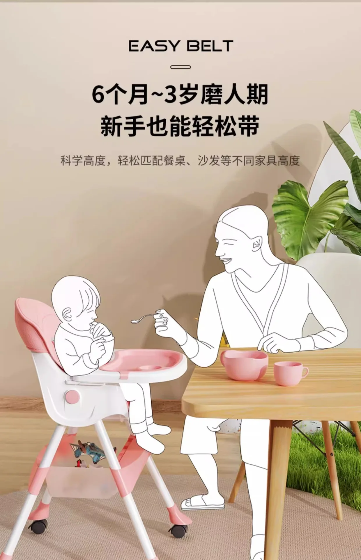 Silla de comedor para bebé, mesa de comedor portátil plegable multifuncional para el hogar, silla de crecimiento para niños