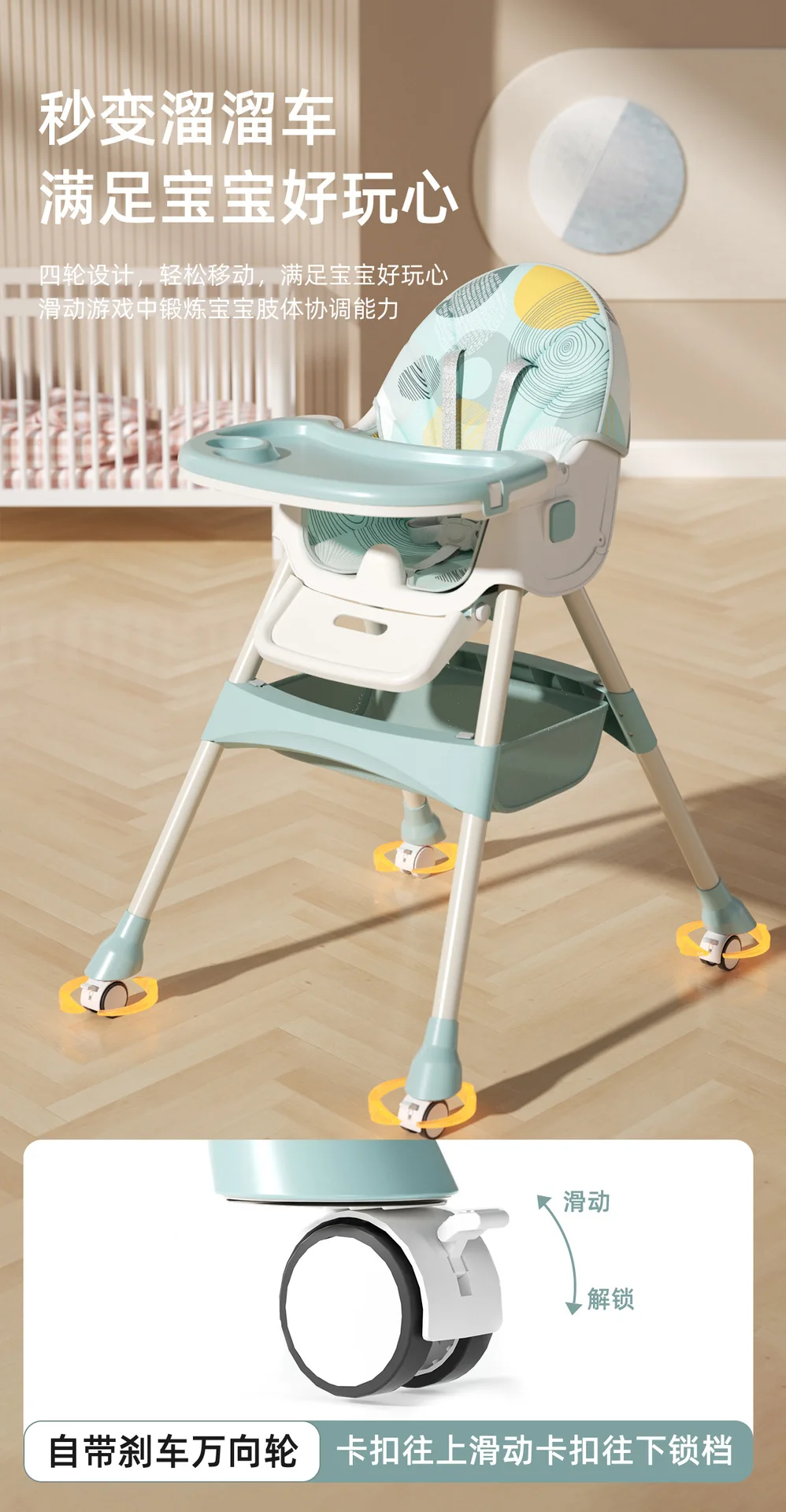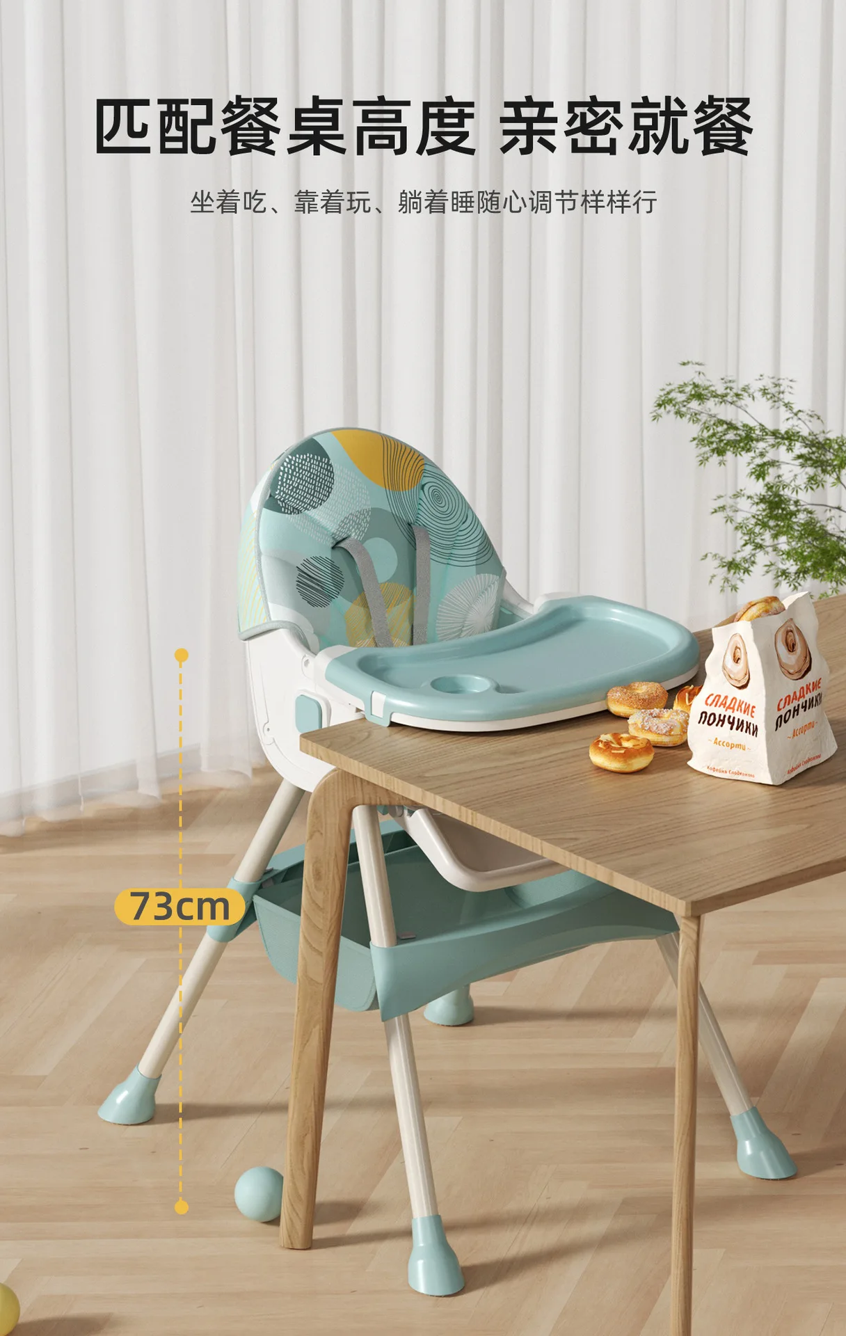 Silla de comedor para bebé, Pedal mejorado, silla de comedor para niños, cómoda silla de mesa de comedor para comer al bebé