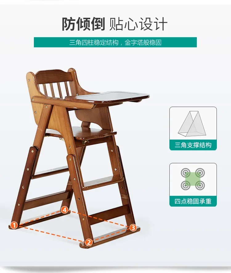 Comprar Silla de comedor para bebé, silla de comedor para niños, silla de comedor de madera maciza para el hogar, elevador plegable portátil multifuncional
