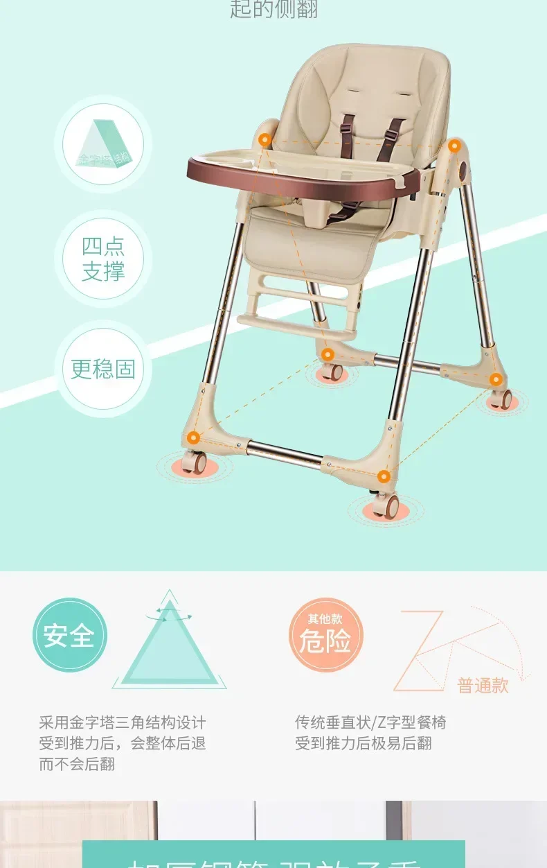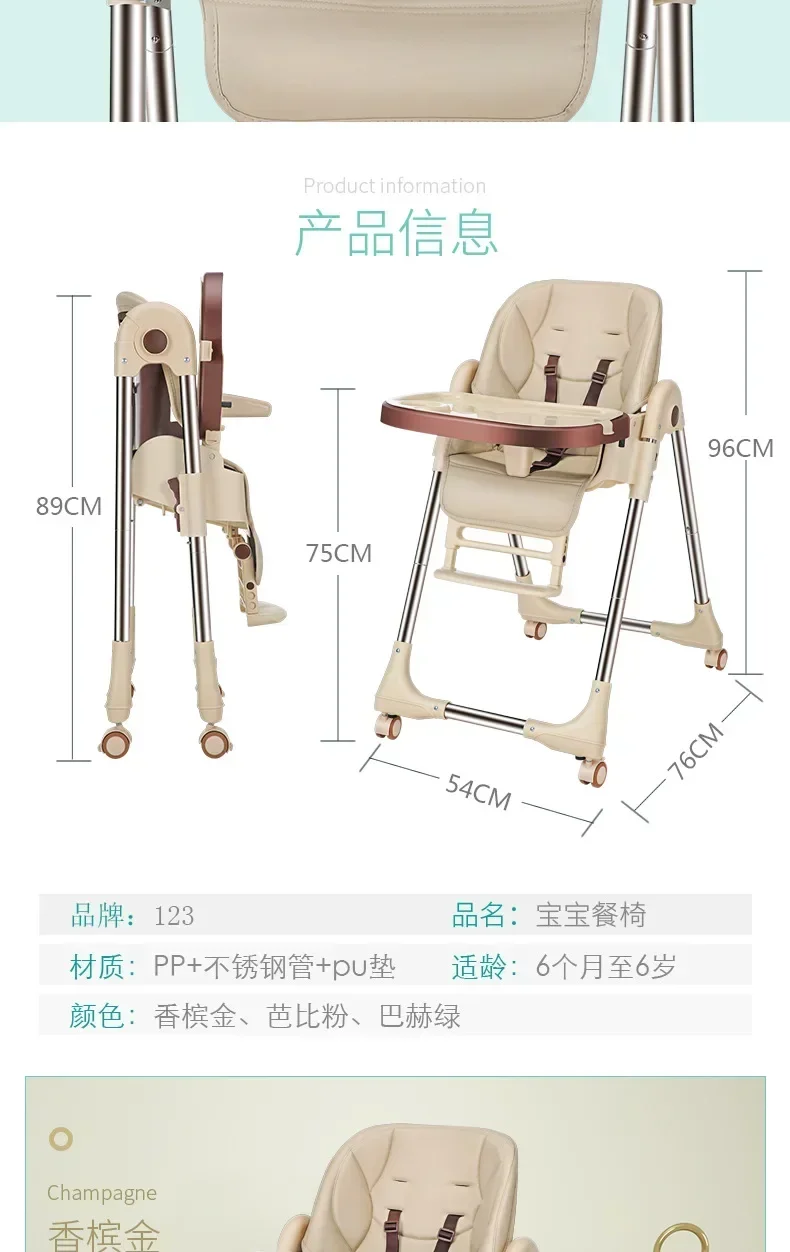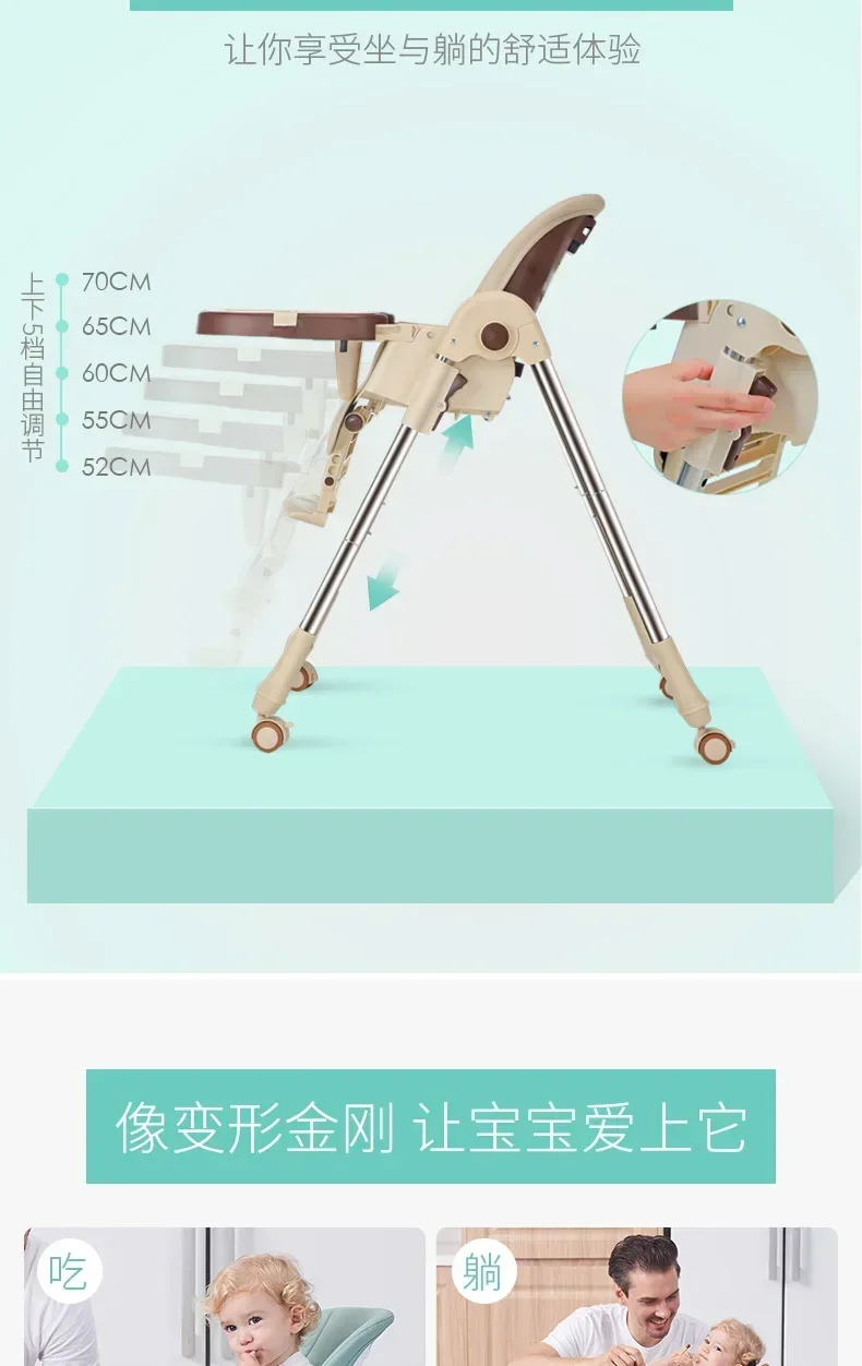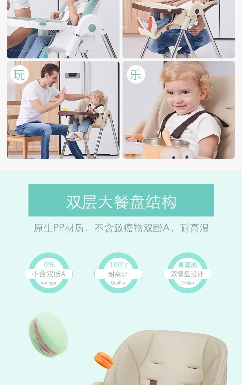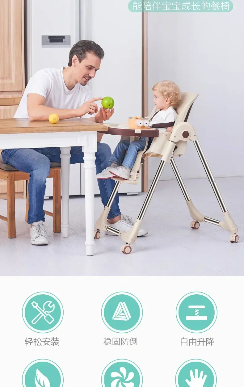 Silla de comedor para niños, silla de comedor para bebé, asiento de mesa de comedor portátil multifuncional plegable para bebé