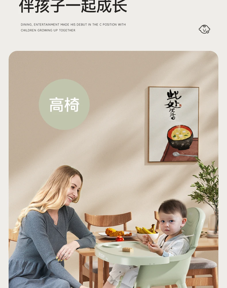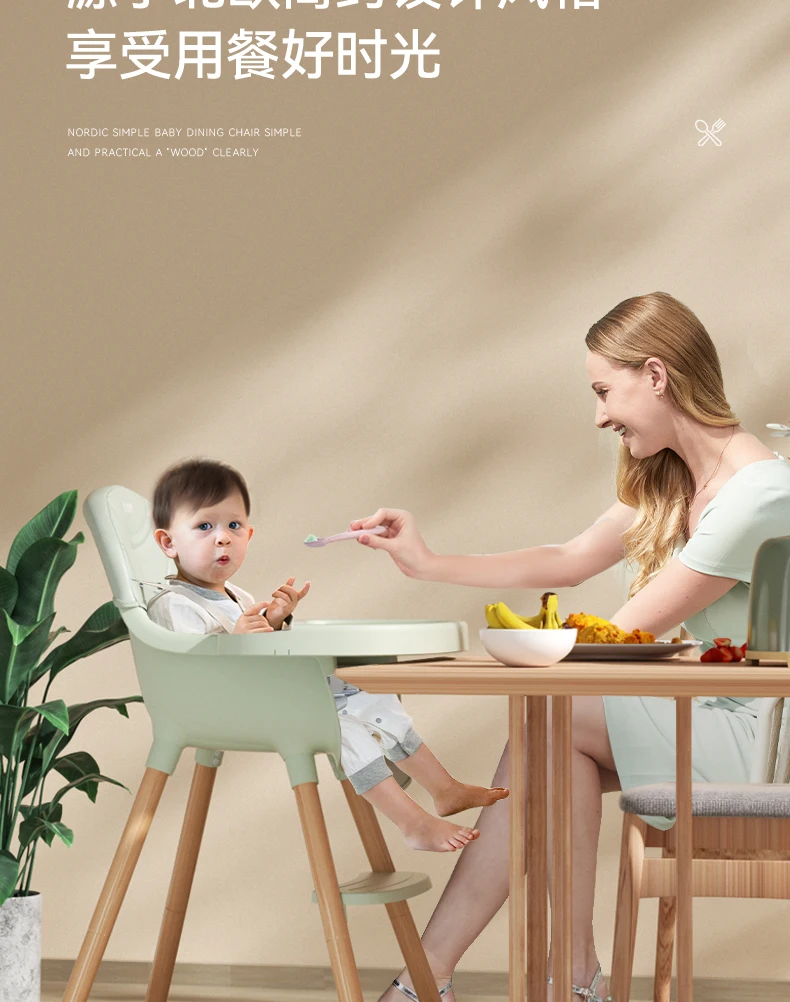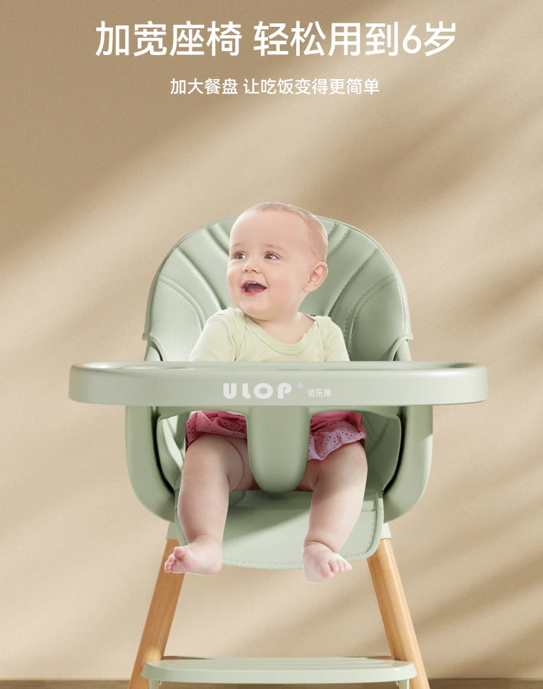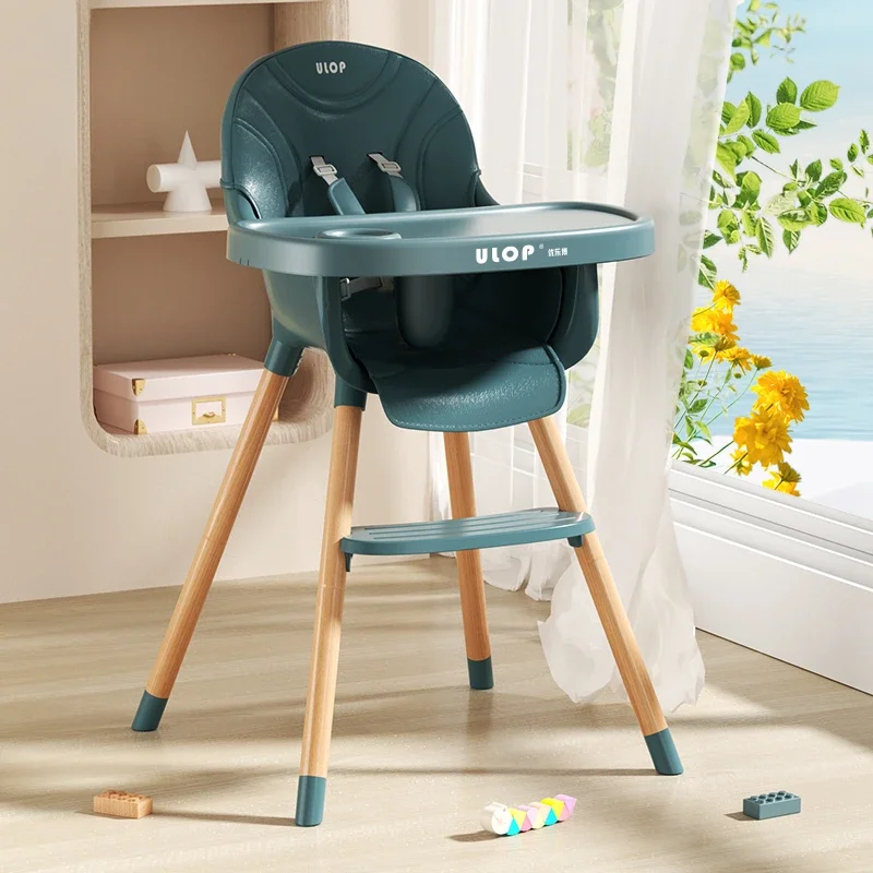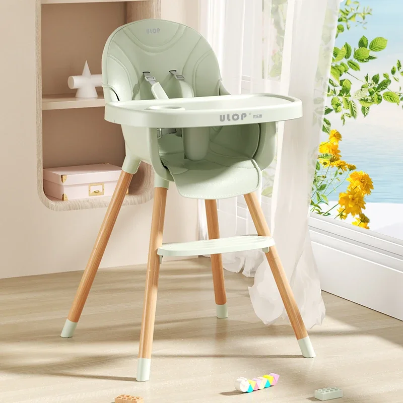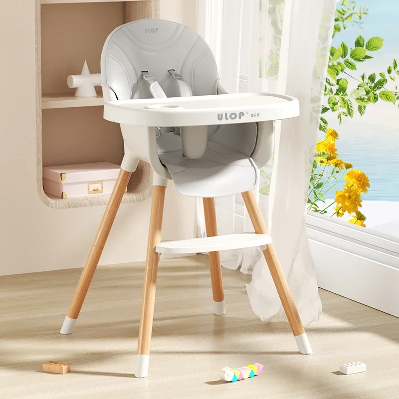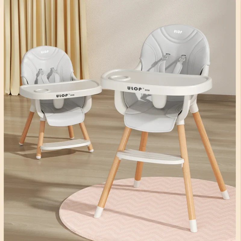 Silla de comedor sencilla para bebé, mesa y sillas de cena para bebé, trona de madera maciza para el hogar, silla con plato de comedor agrandada para niños