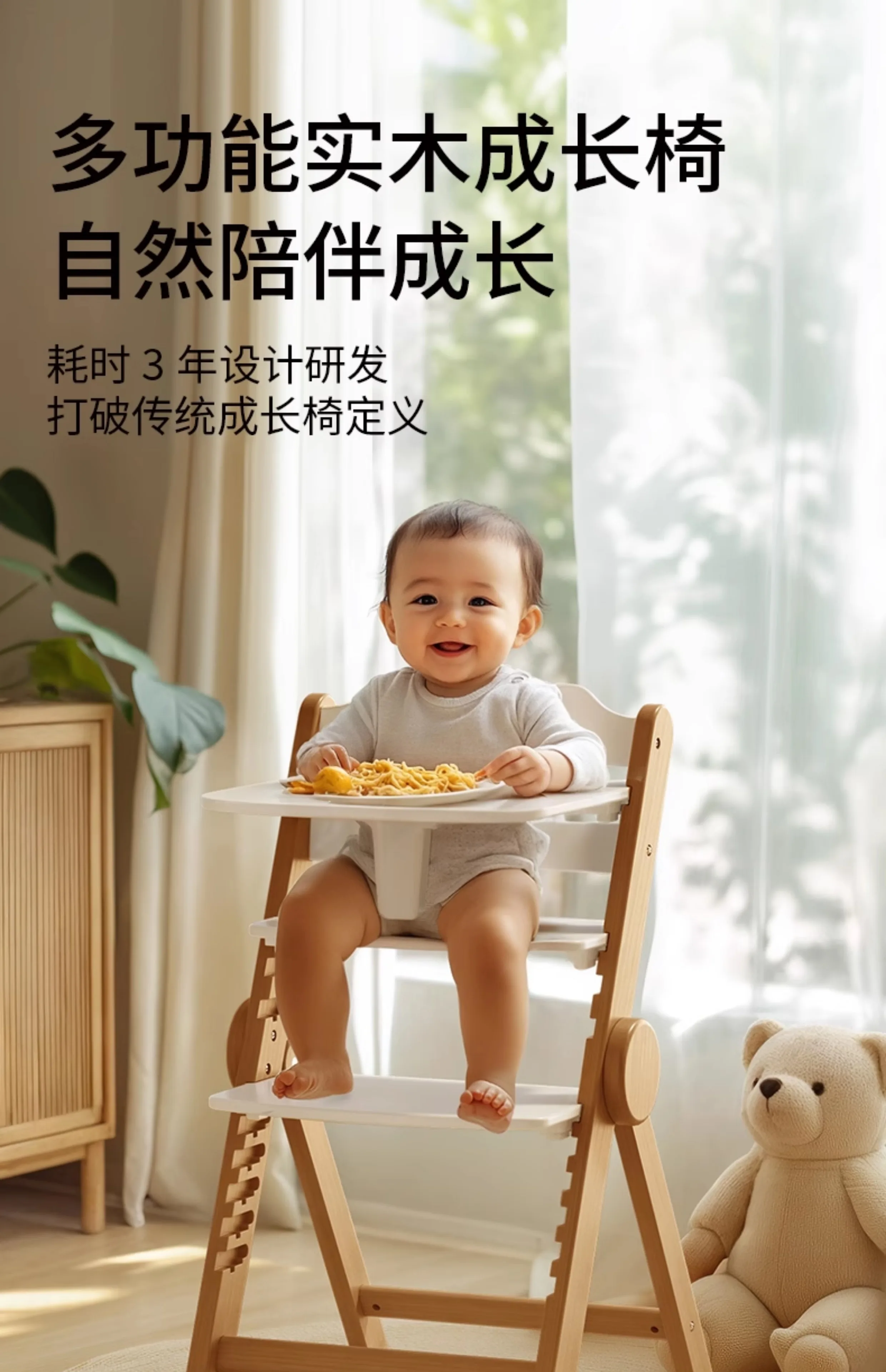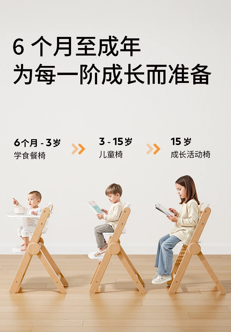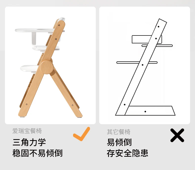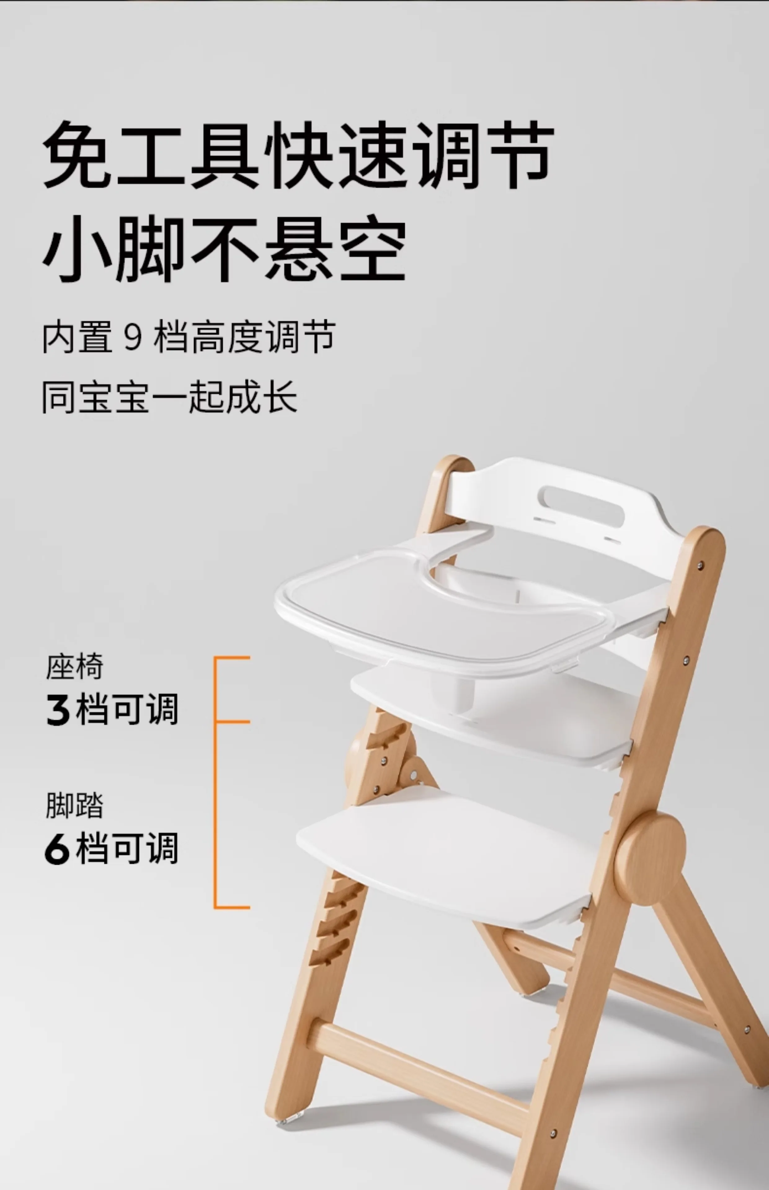 Silla de crecimiento de madera maciza para niños, silla para comer para bebés, mesa de comedor de patas altas, silla plegable multifuncional