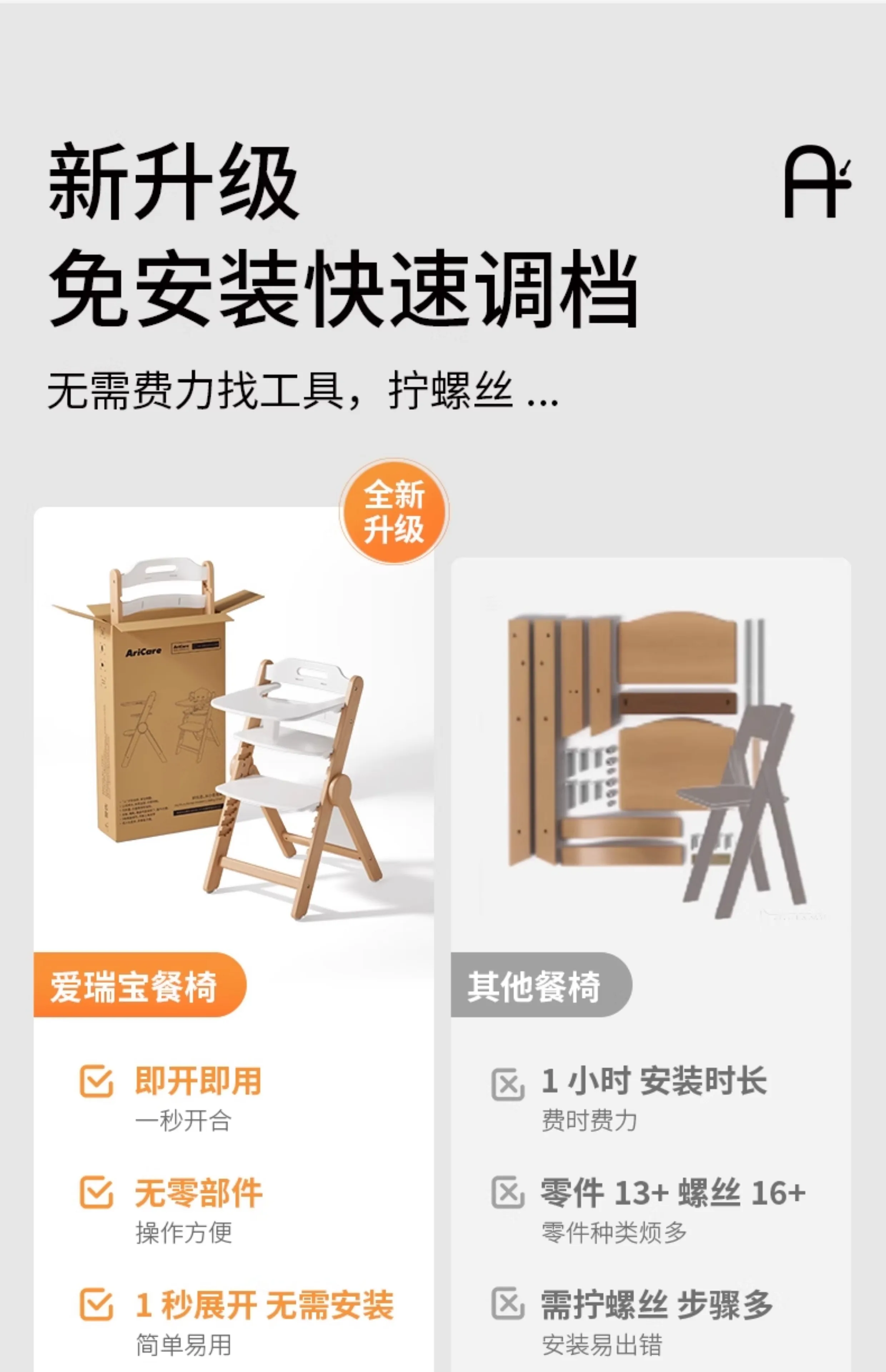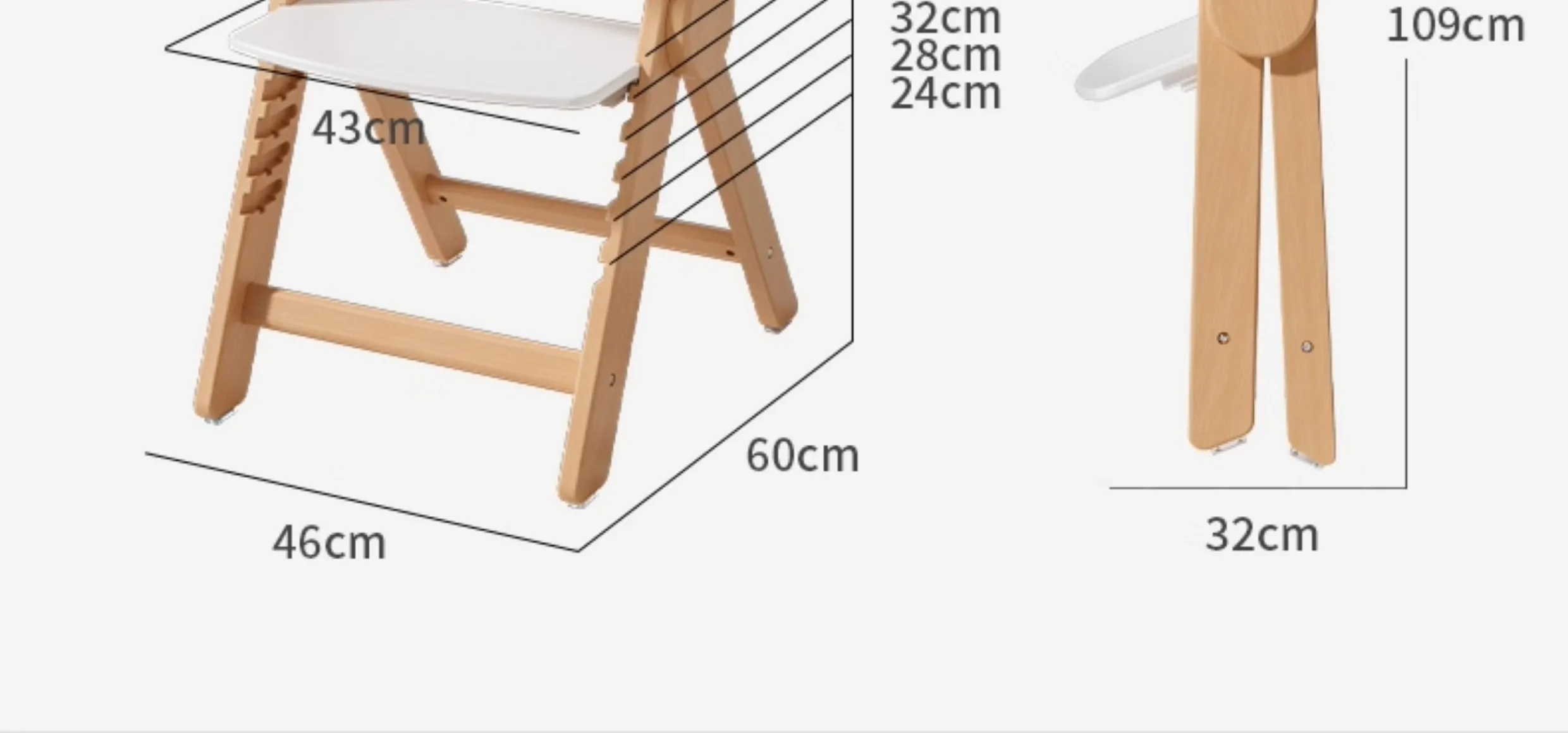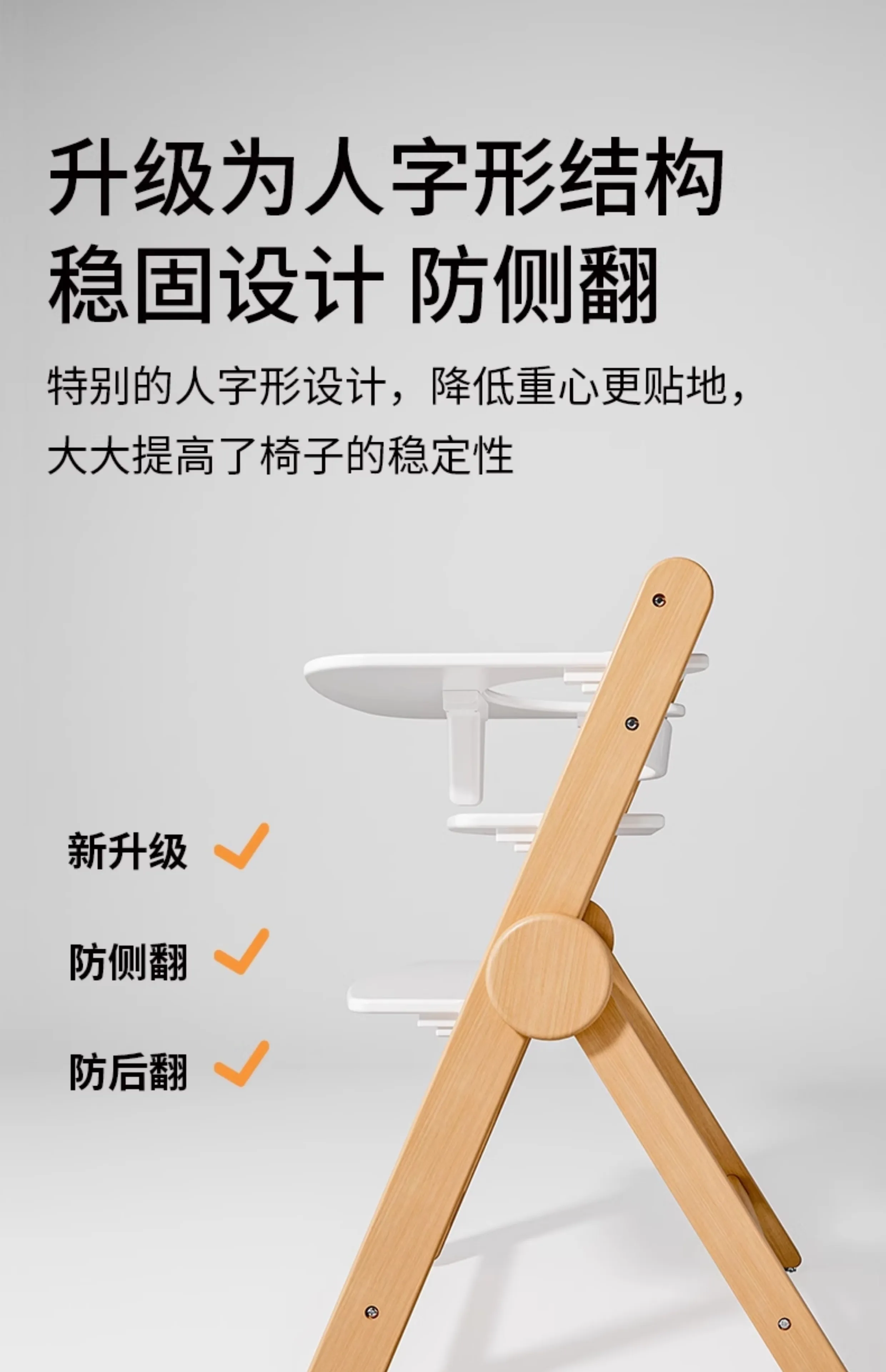 Silla de crecimiento de madera maciza para niños, silla para comer para bebés, mesa de comedor de patas altas, silla plegable multifuncional