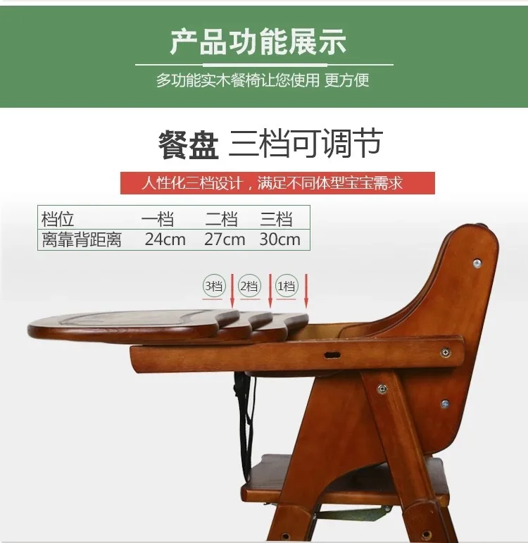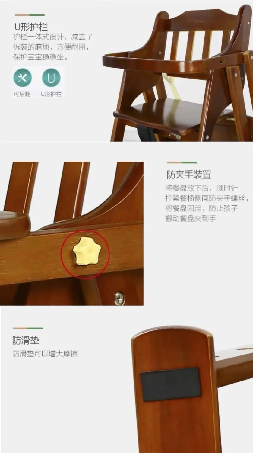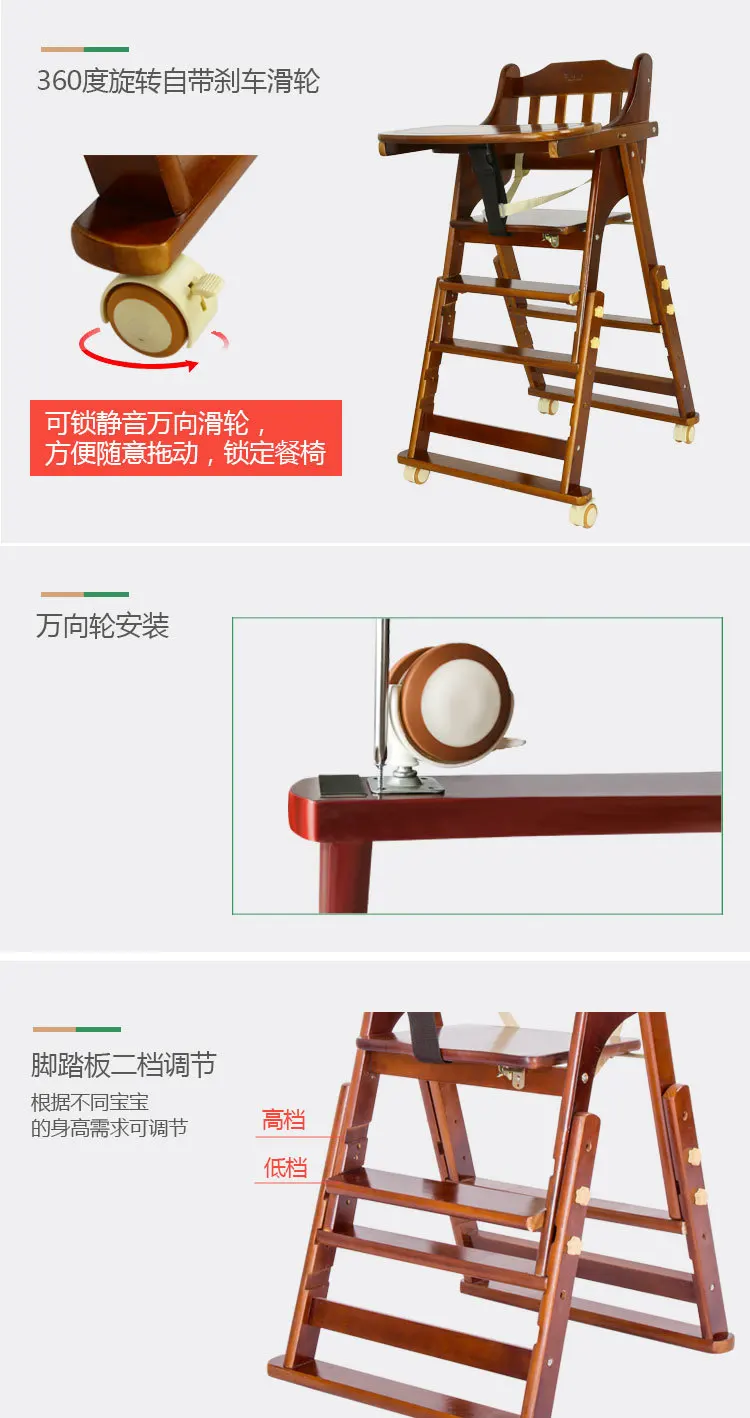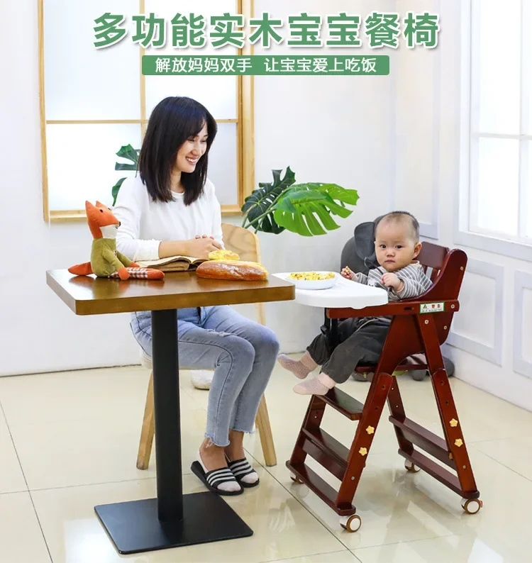Silla de mesa de comedor para bebé, silla de comedor para niños, asiento de comedor plegable portátil multifuncional de madera maciza para el hogar