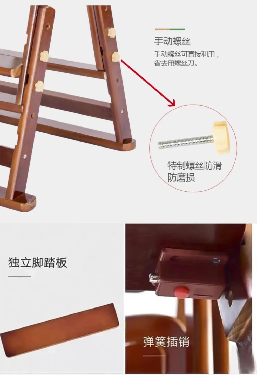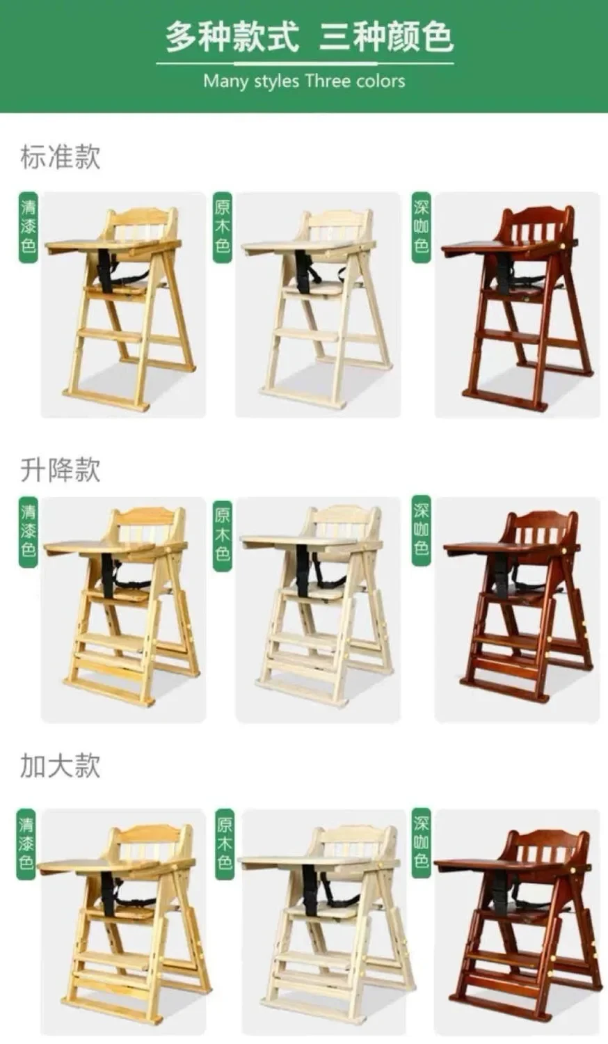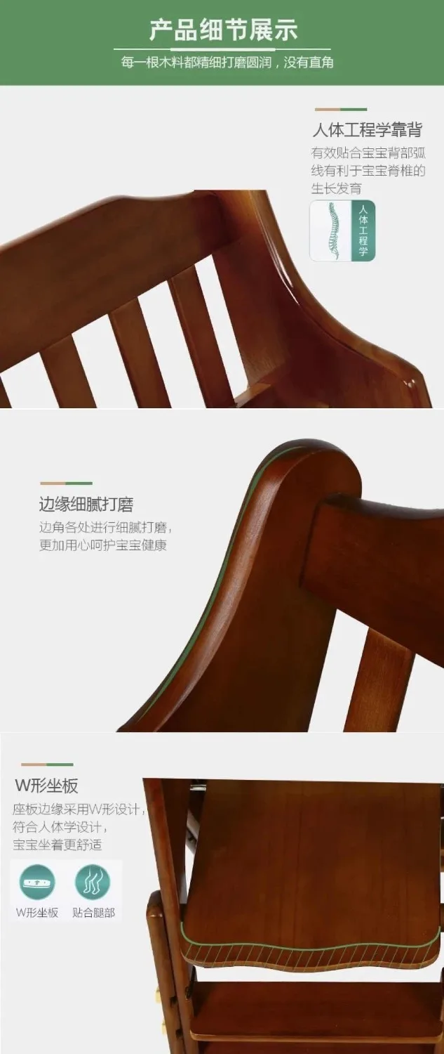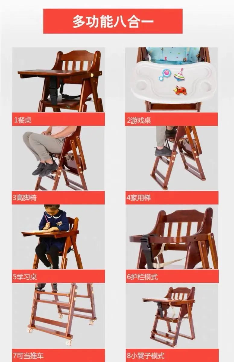 Silla de mesa de comedor para bebé, silla de comedor para niños, asiento de comedor plegable portátil multifuncional de madera maciza para el hogar
