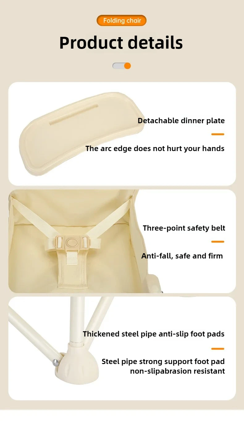 Título EN: Silla plegable para bebé con respaldo, asiento para niños pequeños para picnic al aire libre y alimentación en interiores Características clave: El respaldo ergonómico favorece una postura saludable. La estructura de soporte multipunto garantiza la seguridad. Se pliega para almacenamiento y portabilidad. Fuerte capacidad de carga. Marco engrosado y diseño antivuelco. Palabras clave SEO: silla plegable para bebés, asiento de picnic para niños, silla de comedor para niños pequeños, silla portátil para bebés, silla de playa para bebés, silla para bebés con respaldo, asiento para bebés compacto, silla para bebés de viaje, asiento de alimentación interior, silla para bebés antivuelco Compra espectáculos