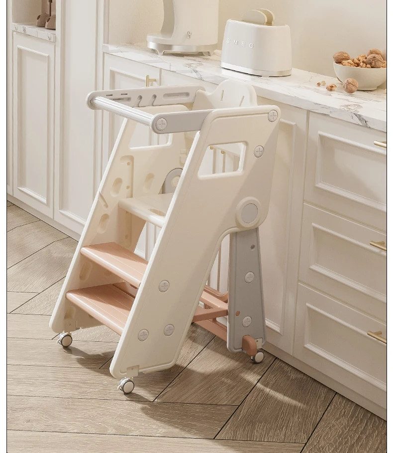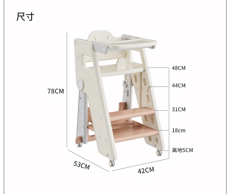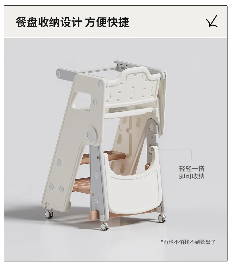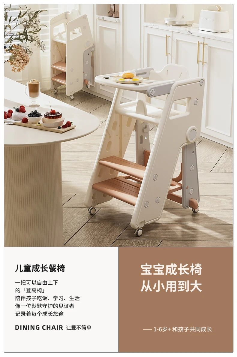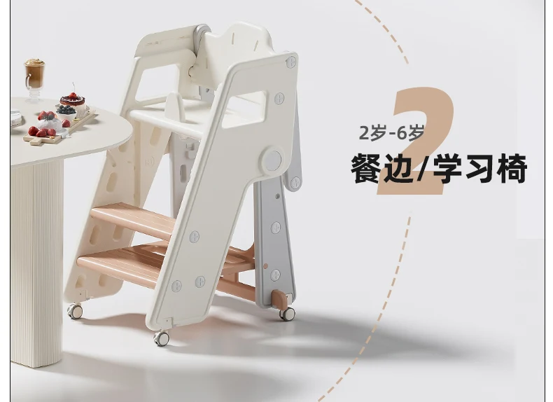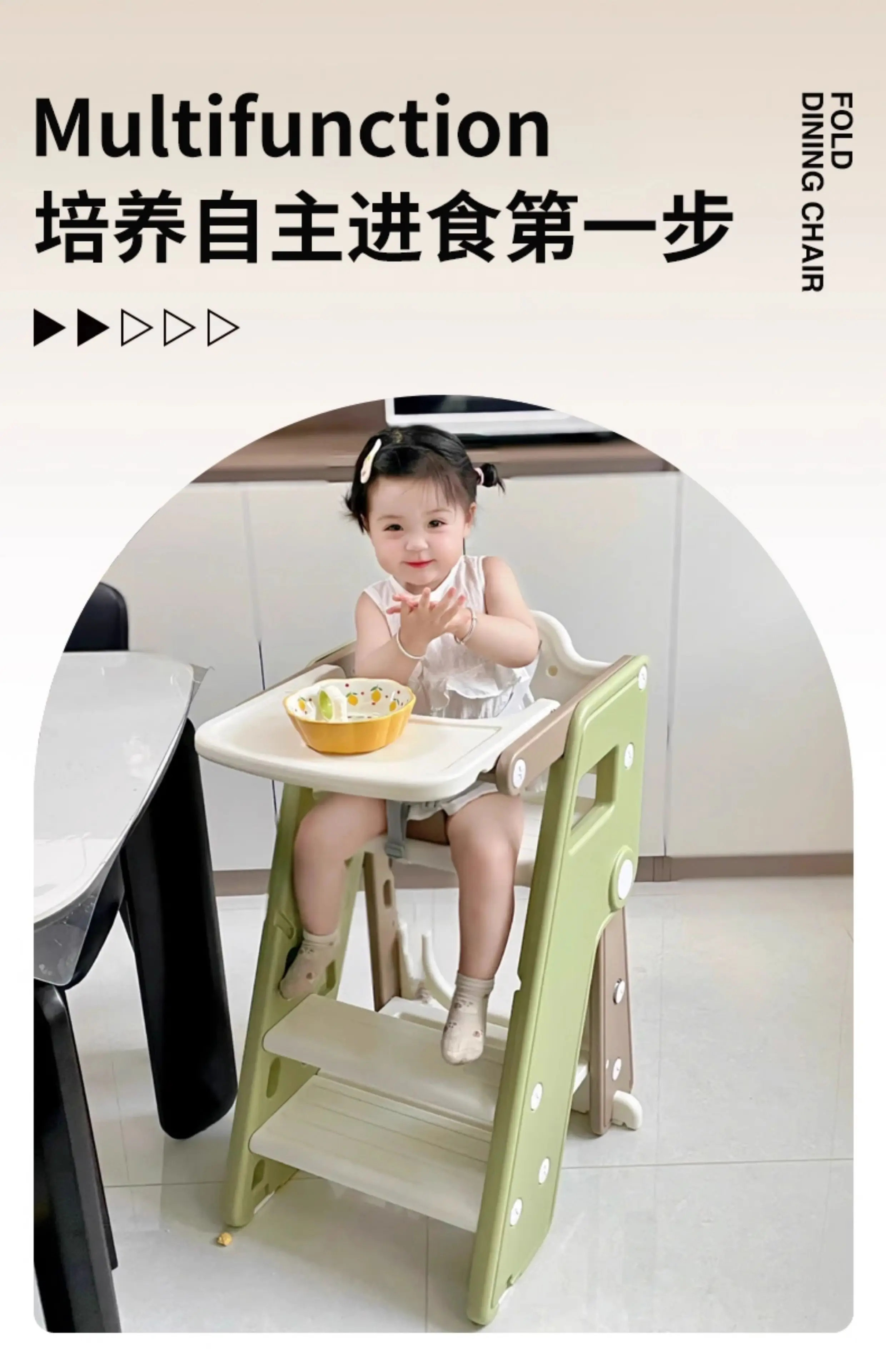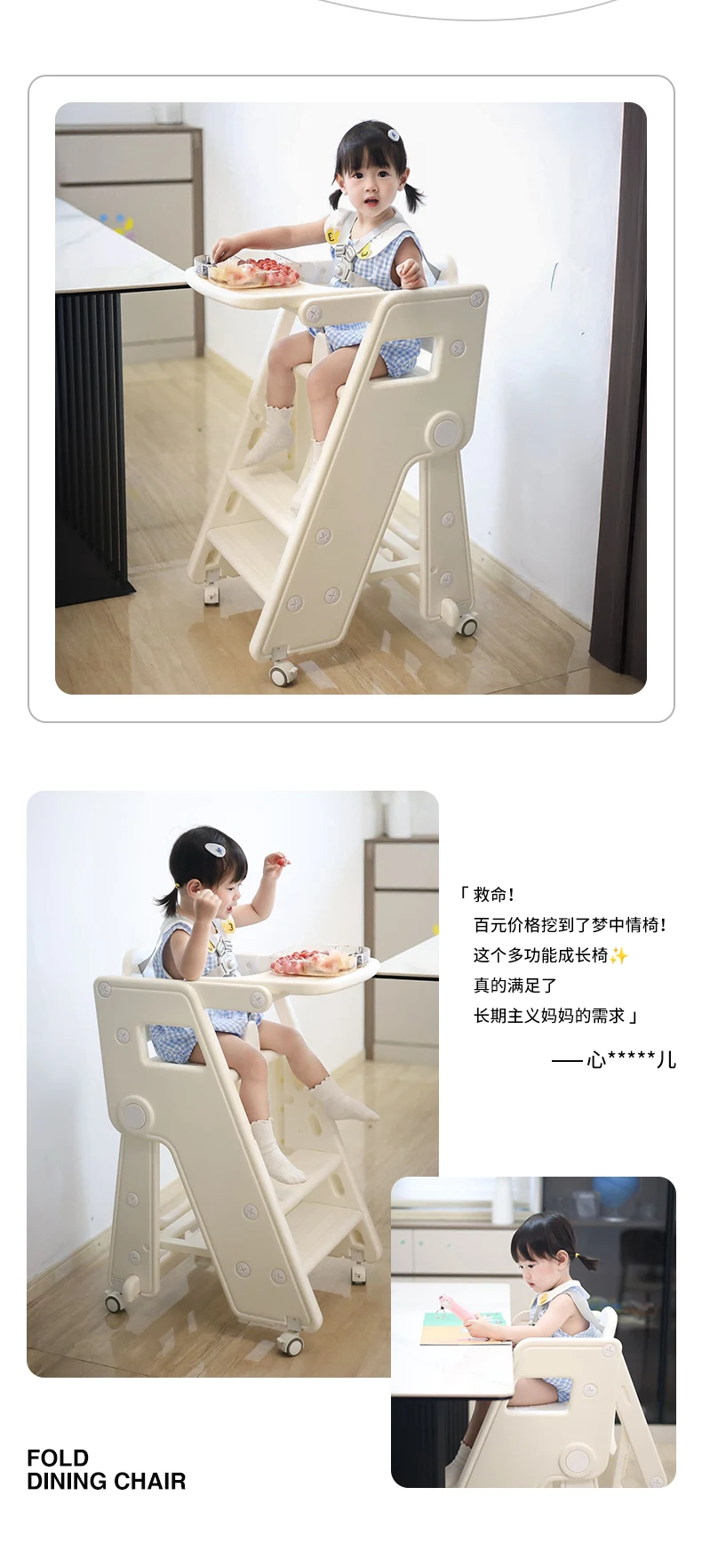 Silla plegable para crecimiento de bebé con mesa y ruedas extraíbles, asiento para comedor y aprendizaje durante 6 meses a 2 años, bandeja extensible, fácil de plegar