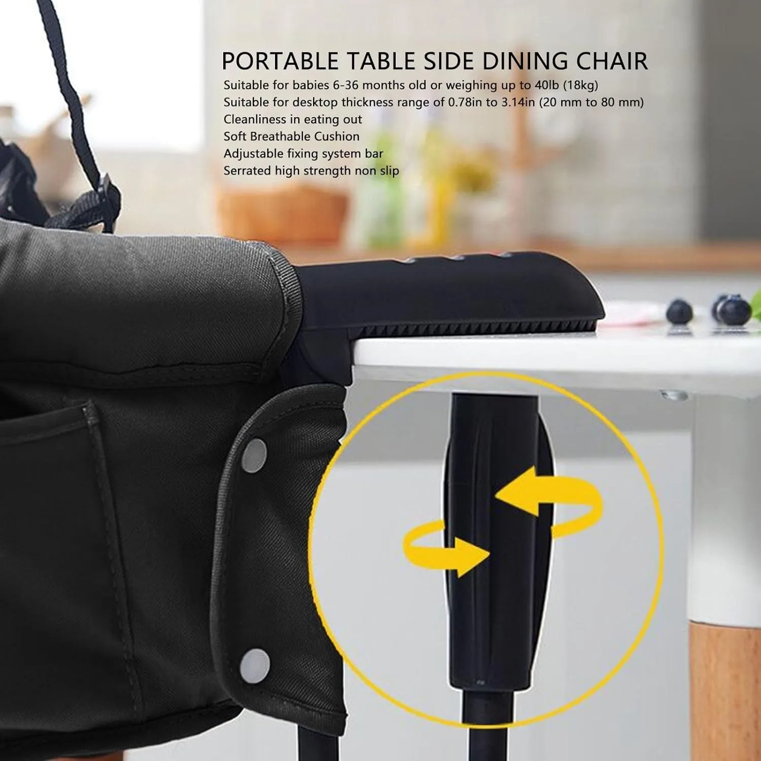 Fácil de usar: el asiento se fija rápidamente a la mesa y la funda se puede quitar y lavar fácilmente.Gancho plegable para bebé en el asiento Adecuado para mesas con un grosor superior a 2 cm (0,78 pulgadas) o menos de 9 cm (3,54 pulgadas).
