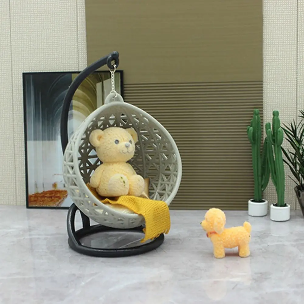 White Dollhouse Hanging Basket Chair Scene Model
