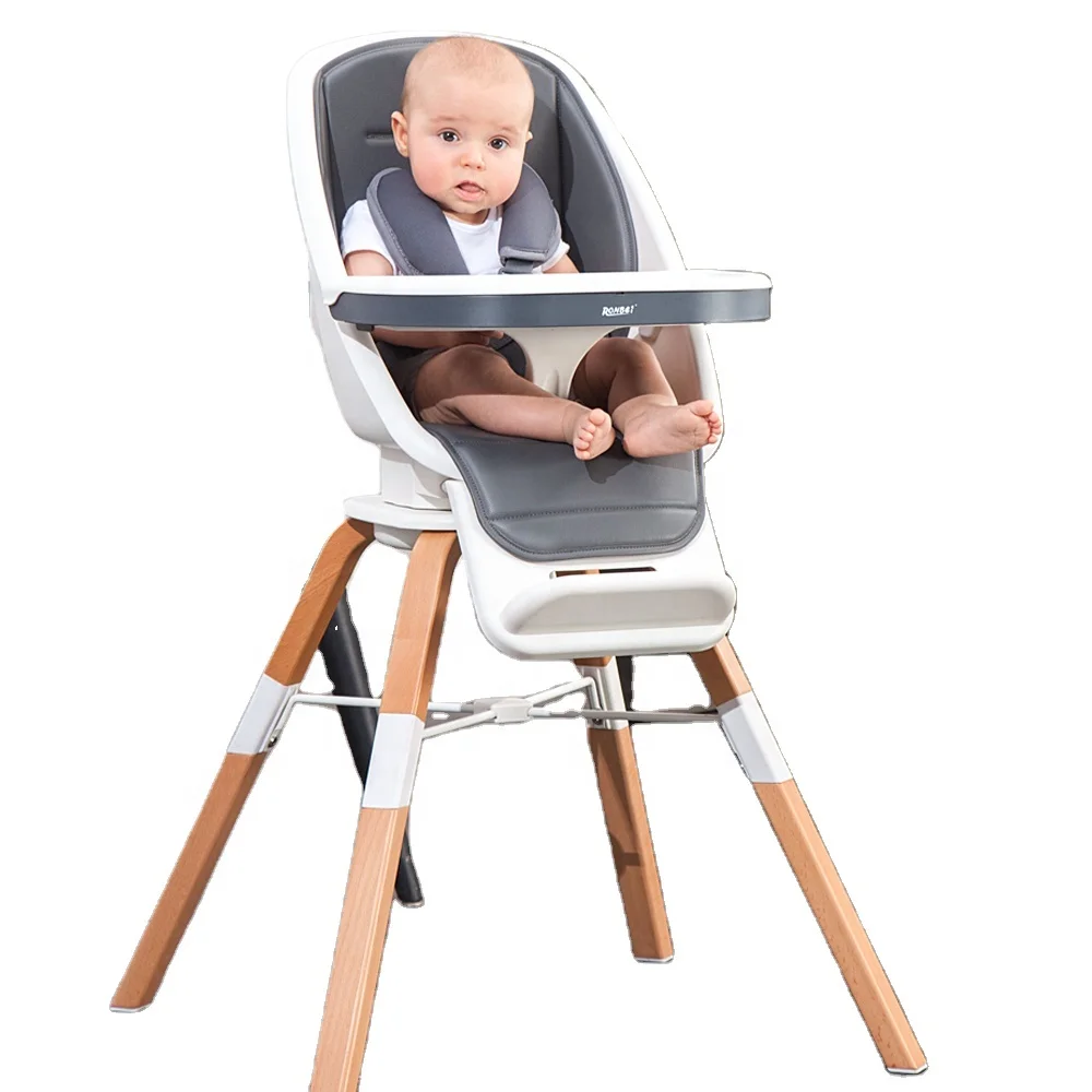 Elegante silla alta giratoria de 360 ° 12 posiciones giratorias Bandeja extraíble y ajustable de 2 posiciones Con una subbandeja de inserción extraíble separada para una fácil limpieza Reposabrazos seguro desmontable con TPU en la barra de la entrepierna Haya desmontable Patas de madera Bandeja extraíble y ajustable para una fácil limpieza Limpiar asiento y cojines de PU Equipado con arnés de seguridad de 5 puntos Reposapiés desmontable adicional con 3 Ajustes Convertible en silla de Bar resistente y baja Silla.